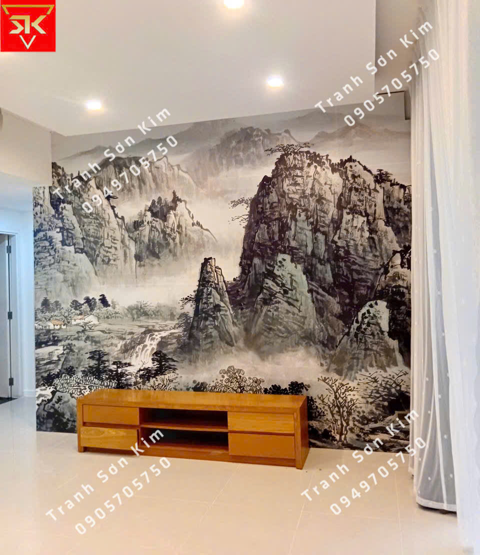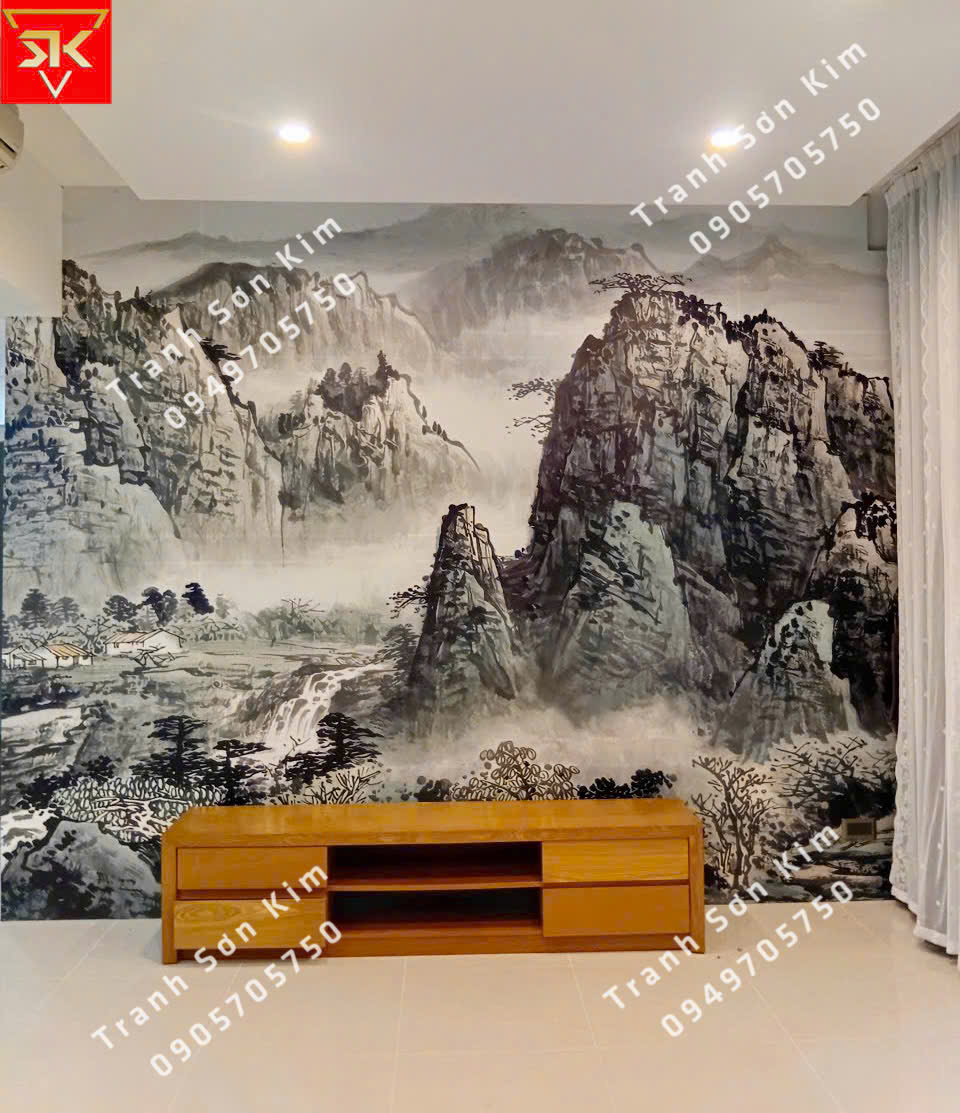Tranh dán tường thủy mặc đẹp, mang nhiều ý nghĩa tại Sơn Kim