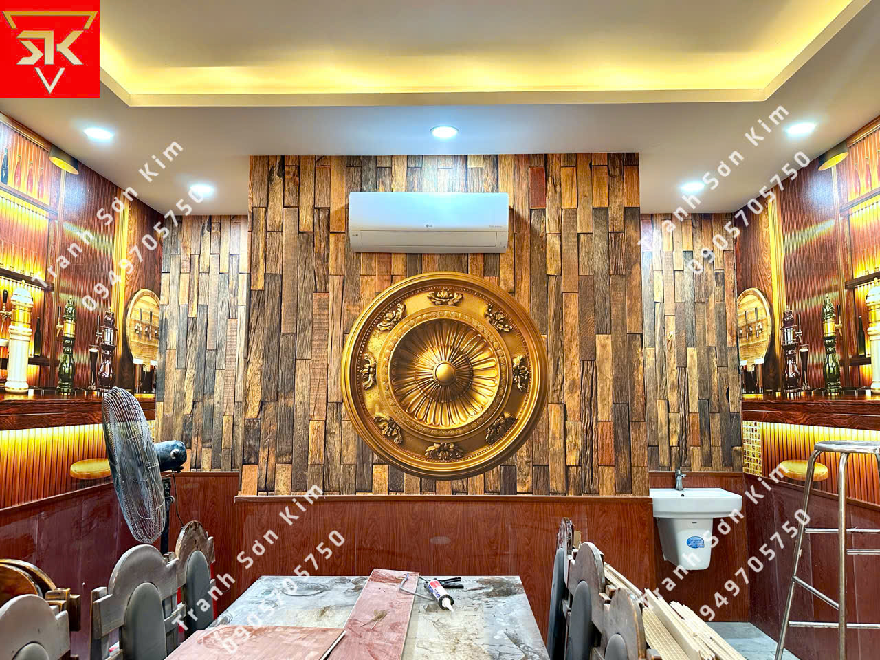 Thi công tranh dán tường 3D giả vách lam sóng cho phòng Vip nhà hàng
