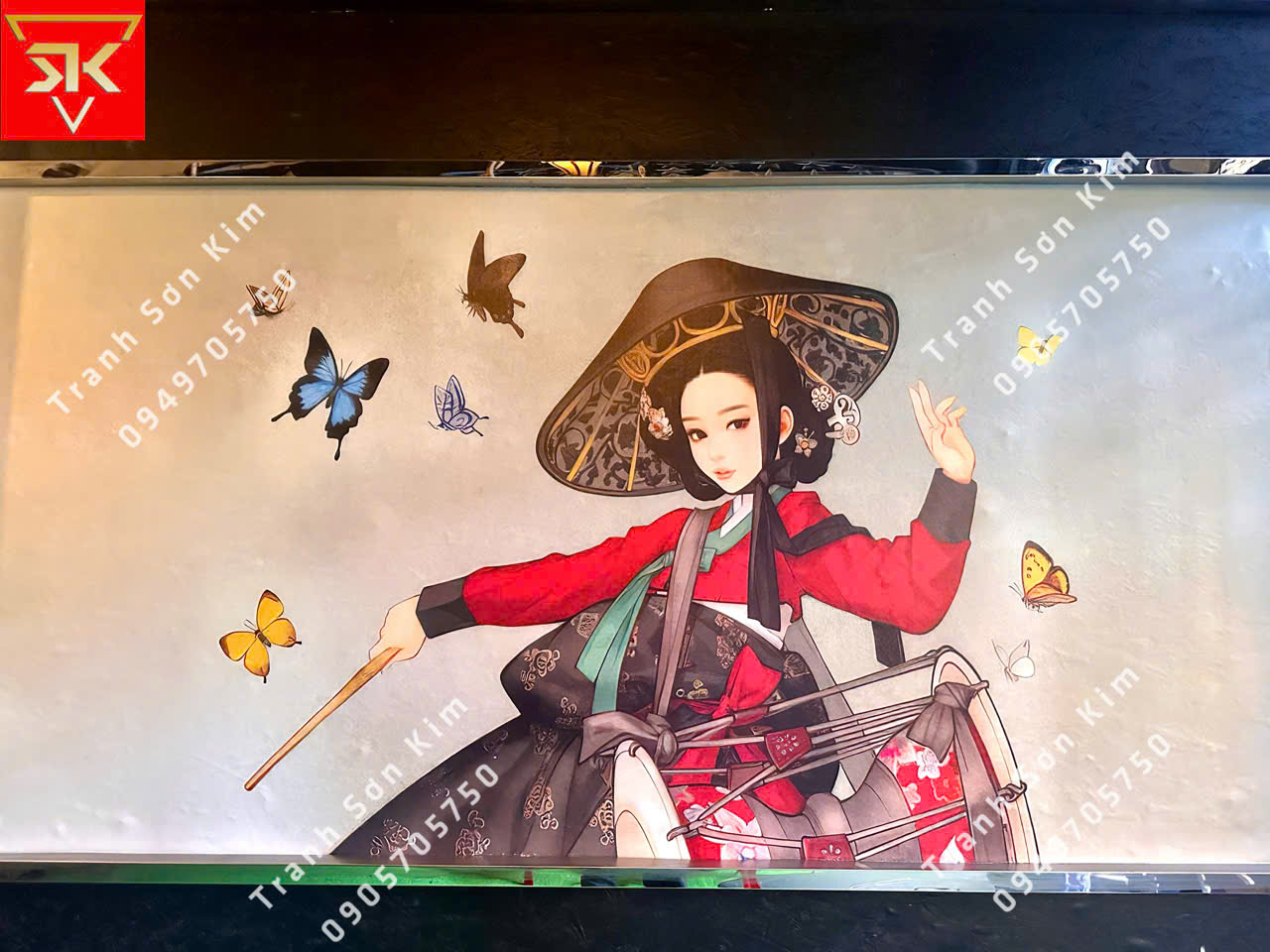 Thi công tranh 3d cô mặc trang phục truyền thống Hàn Quốc cho quán ăn