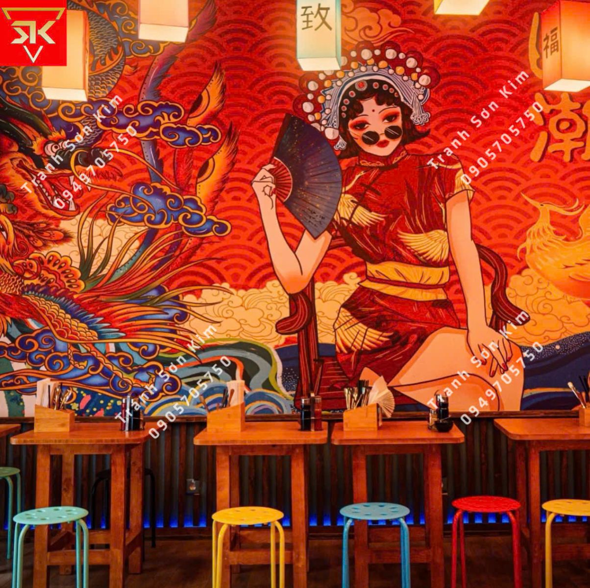 Những mẫu tranh dán tường quán ăn - nhà hàng phong cách Trung Hoa đẹp nhất tại Sơn Kim.