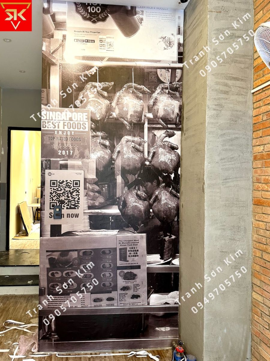 Thi công tranh dán tường cơm gà Hải Nam chuẩn hương vị Singapore