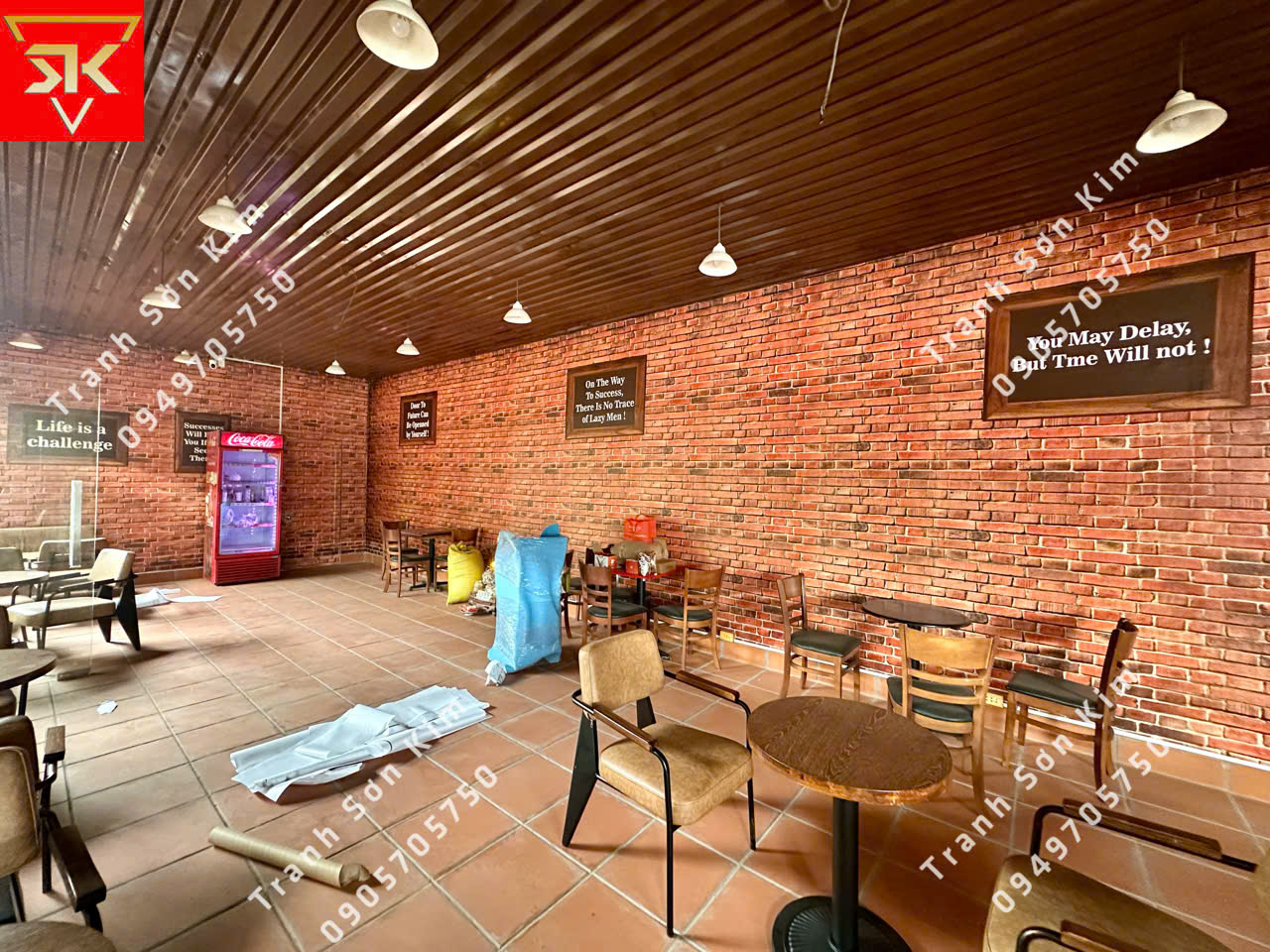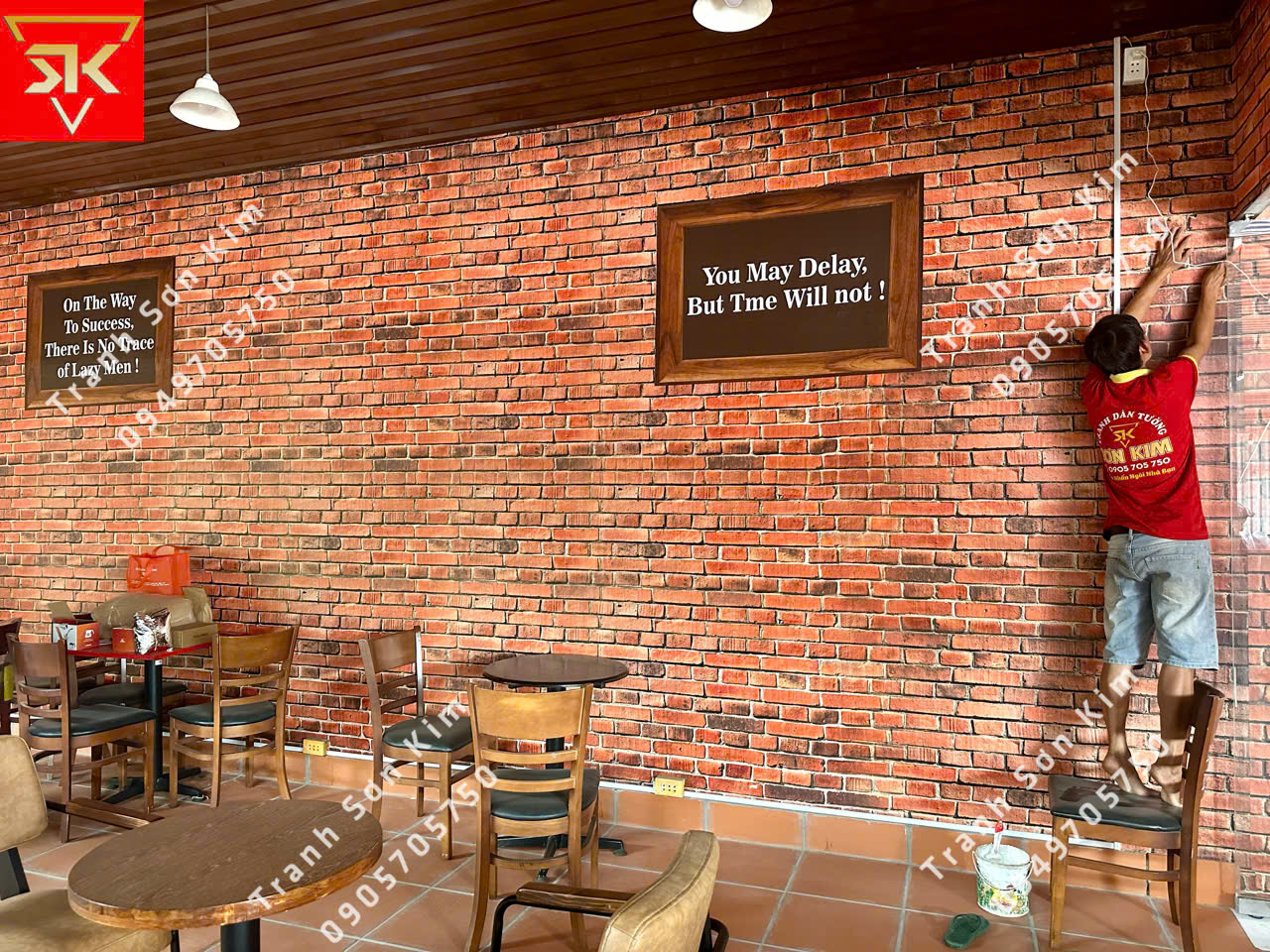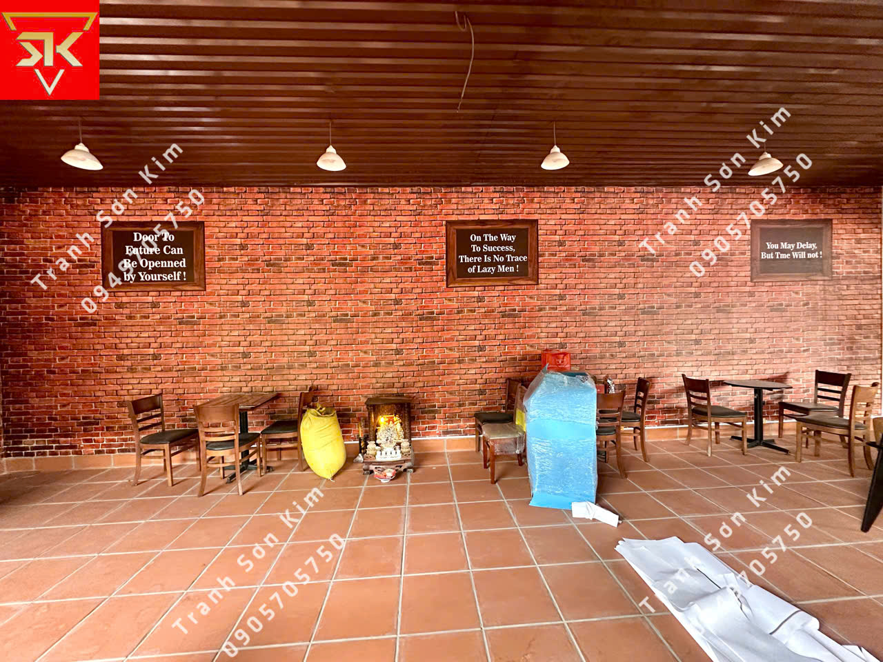 Thi công tranh dán tường giả gạch 3D quán cafe