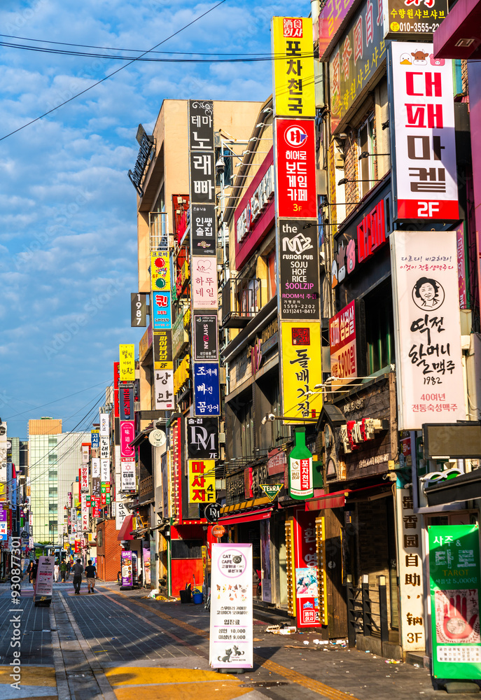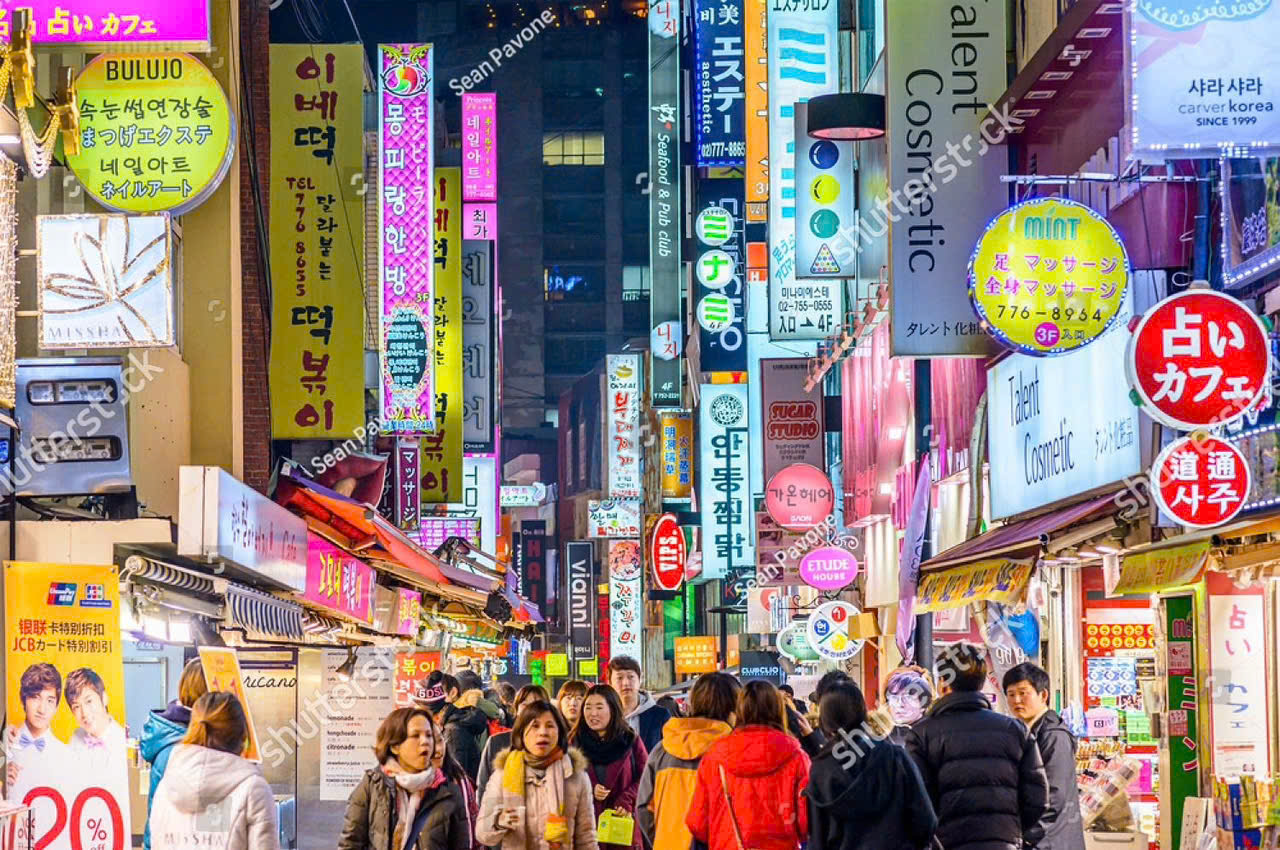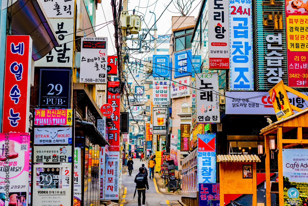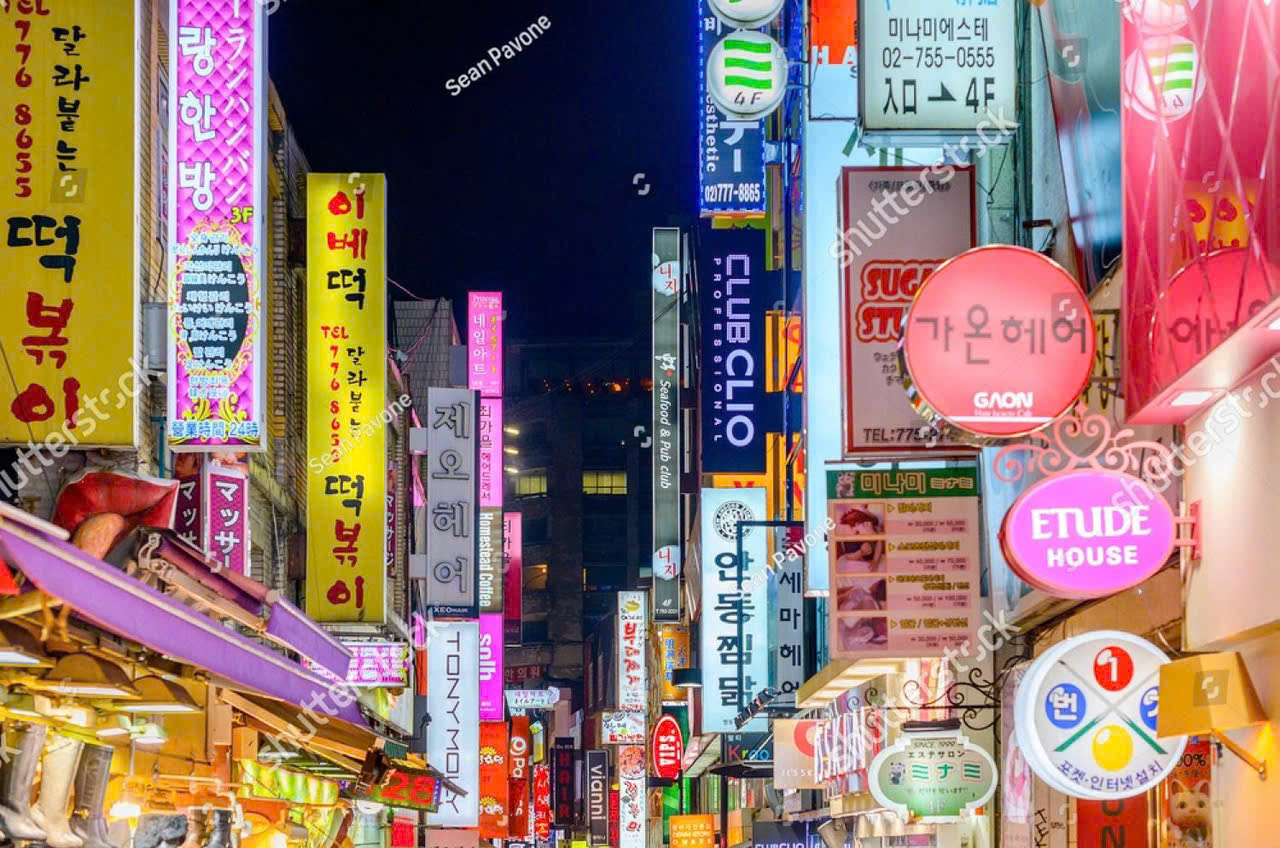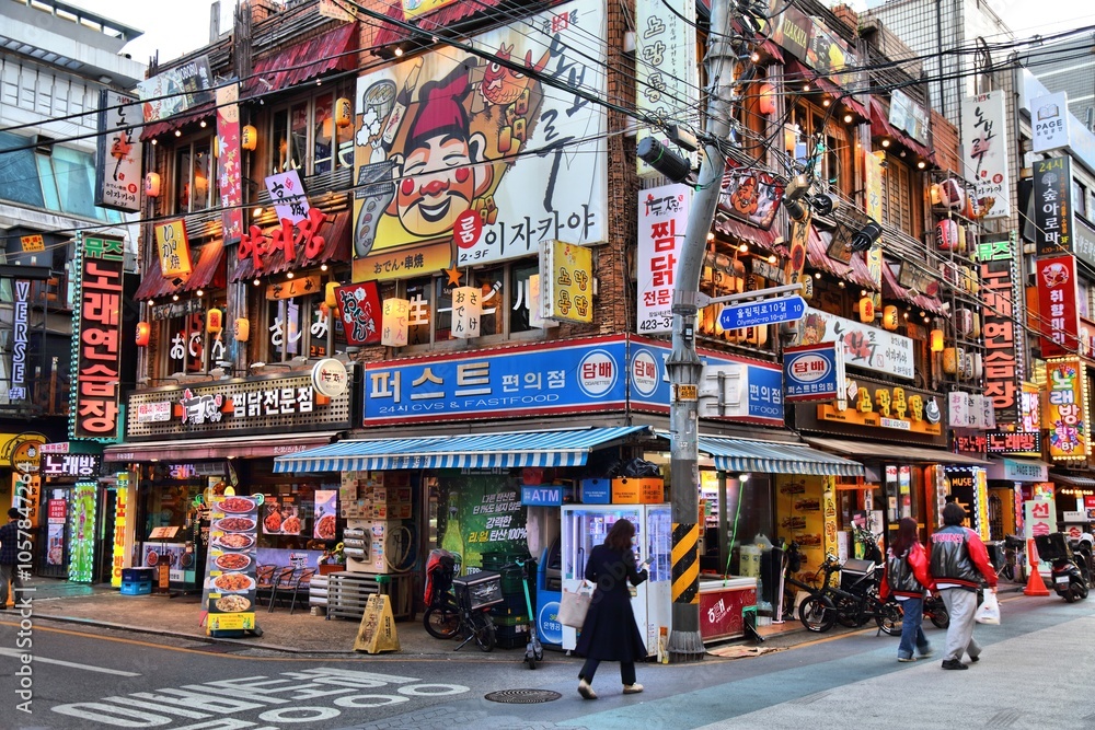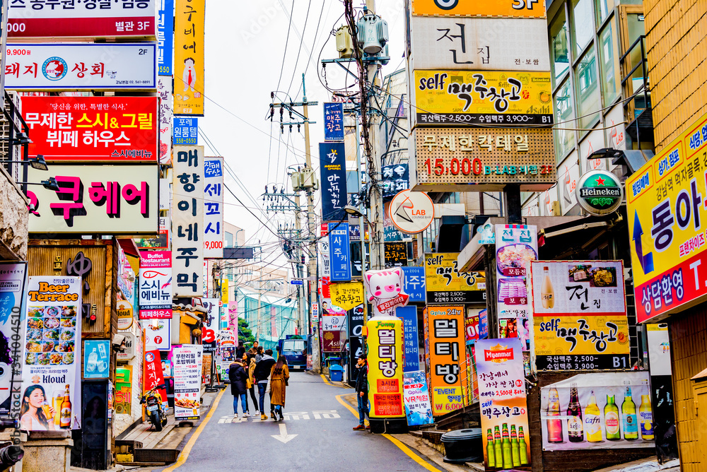 Tranh dán tường cảnh Hàn Quốc về đêm trang trí quán ăn, nhà hàng.