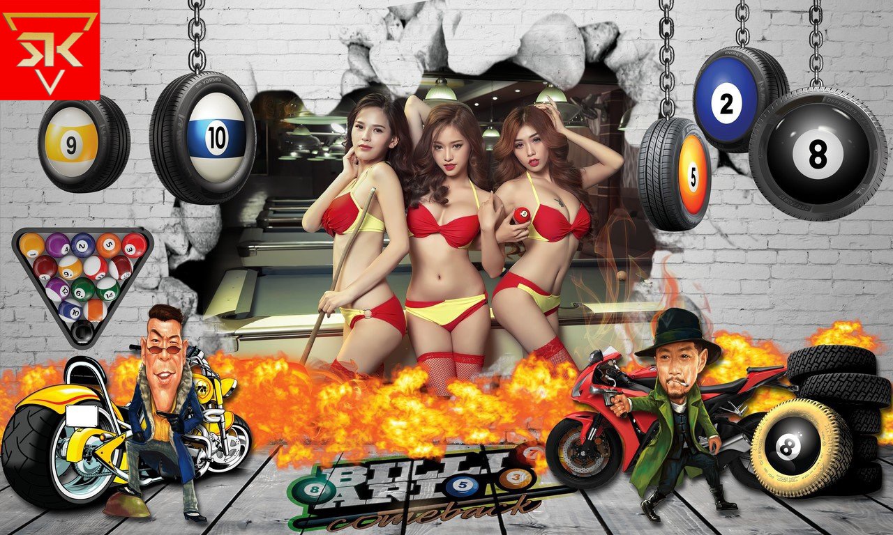 Top Những Mẫu Tranh Dán Tường Cô Gái Sexy Quyến Rũ Chơi Bida Nóng
