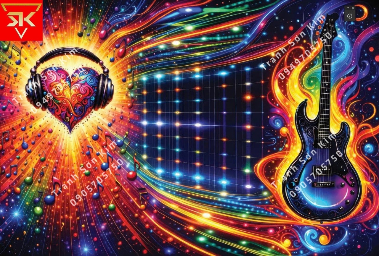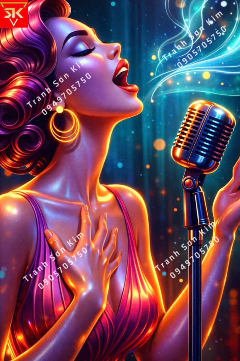 Tranh 3D với chủ đề âm nhạc, ca sĩ, nhạc cụ, ánh sáng neon giúp người hát dễ nhập tâm, tự tin hơn khi cầm mic