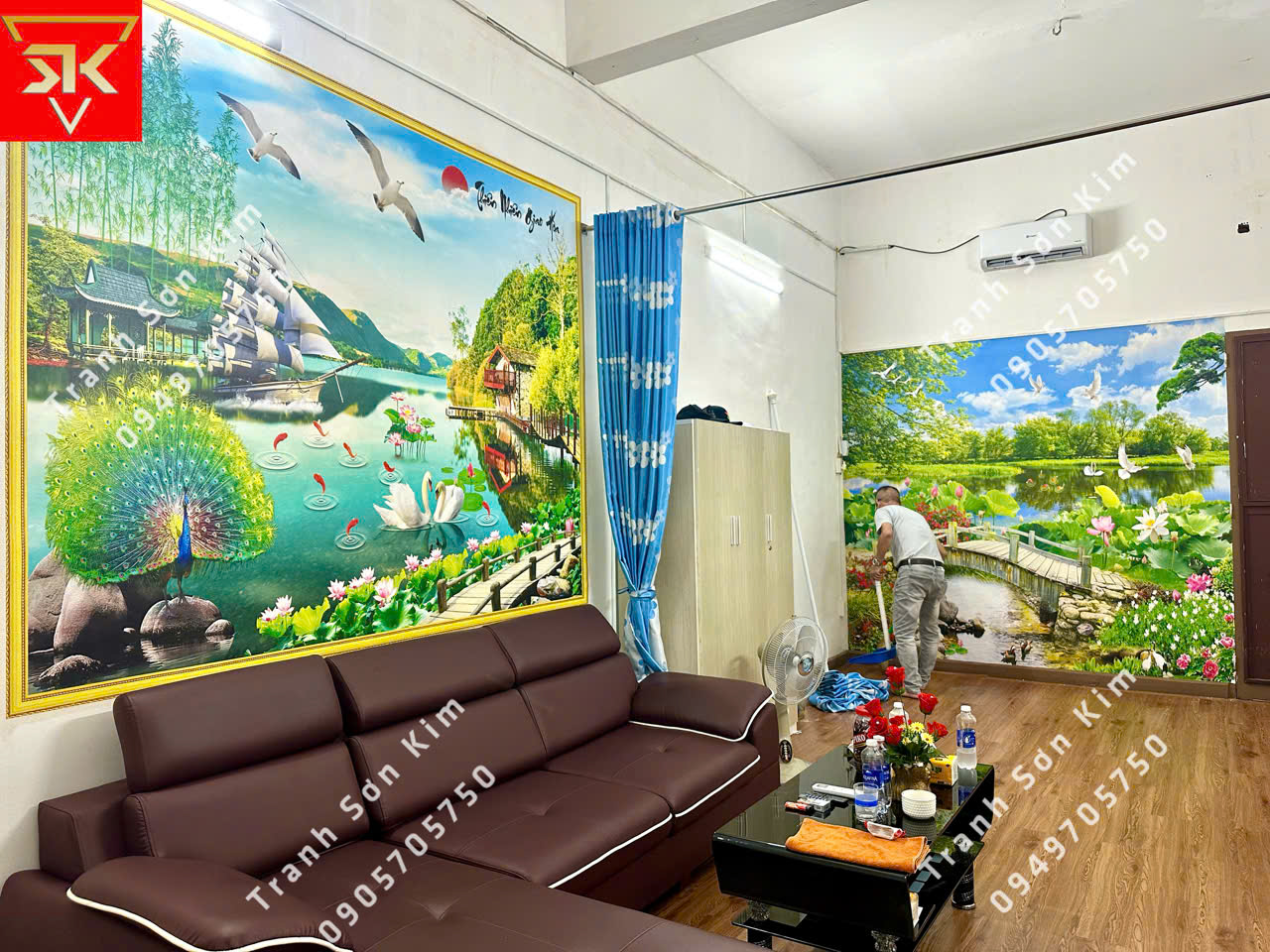 Thi công tranh dán tường phong cảnh thiên nhiên phòng khách
