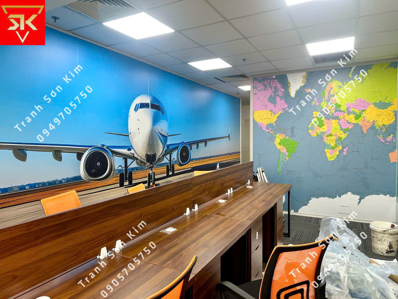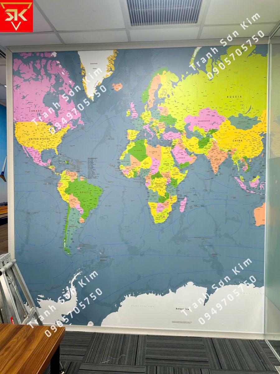 Thi công tranh dán tường bản đồ thế giới cho văn phòng công ty