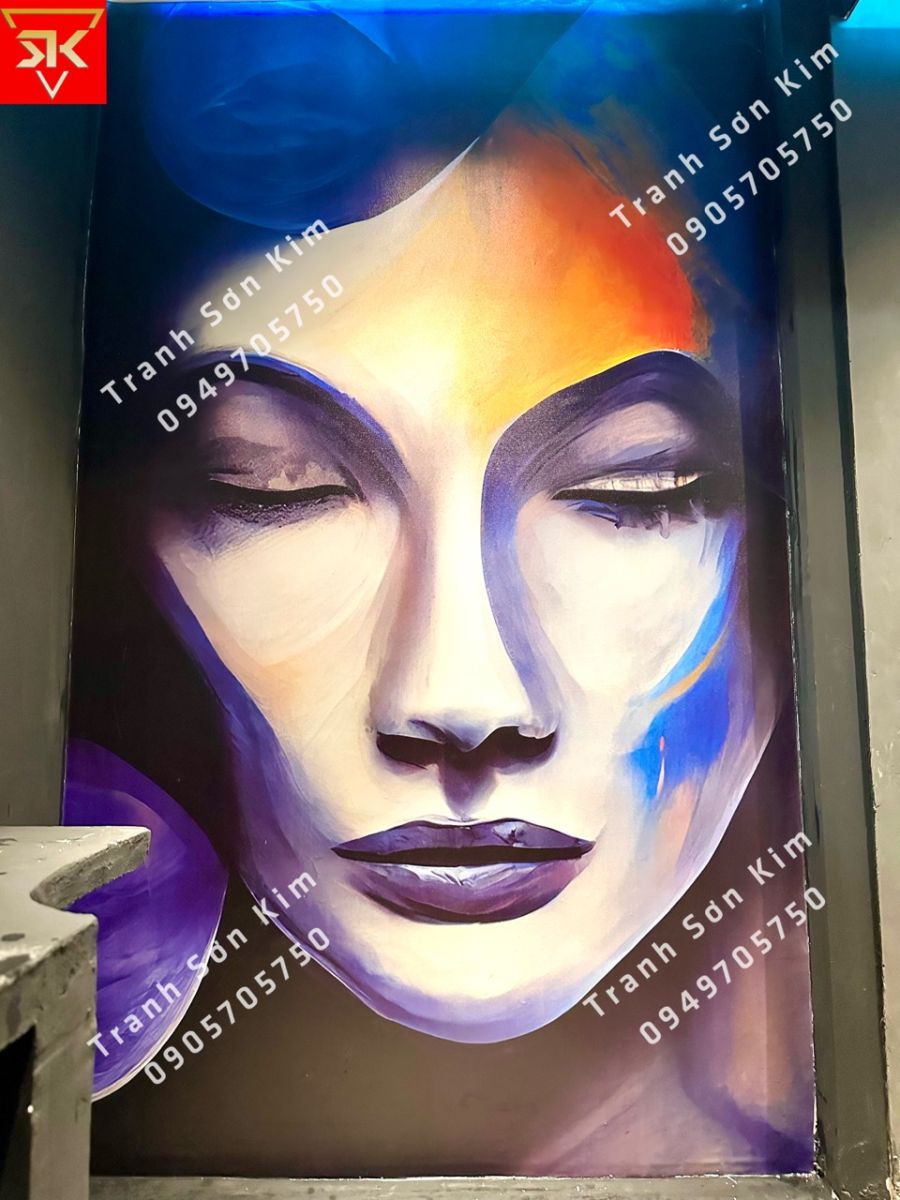 Bức tranh dán tường trừu tượng này là một tuyệt tác nghệ thuật, kết hợp giữa sự sáng tạo và công nghệ hiện đại, mang lại một trải nghiệm thị giác đầy mê hoặc cho người nhìn. Với hình ảnh một người phụ nữ xinh đẹp đang nhắm mắt, thể hiện sự thanh thản và bình yên, bức tranh như mở ra một không gian vô cùng huyền ảo và kỳ diệu trước mắt.
