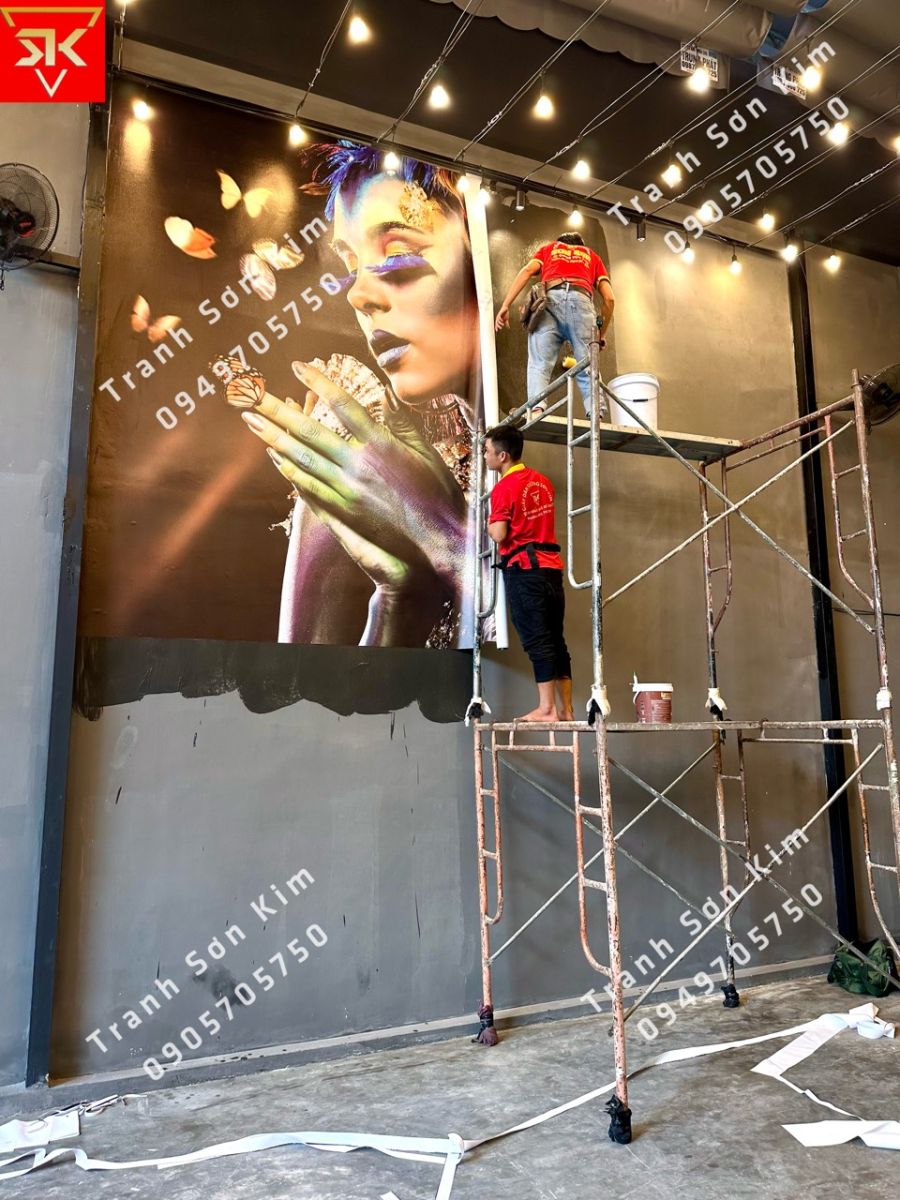 Thi công bức tranh dán tường cô gái trừu tượng cho quán bida