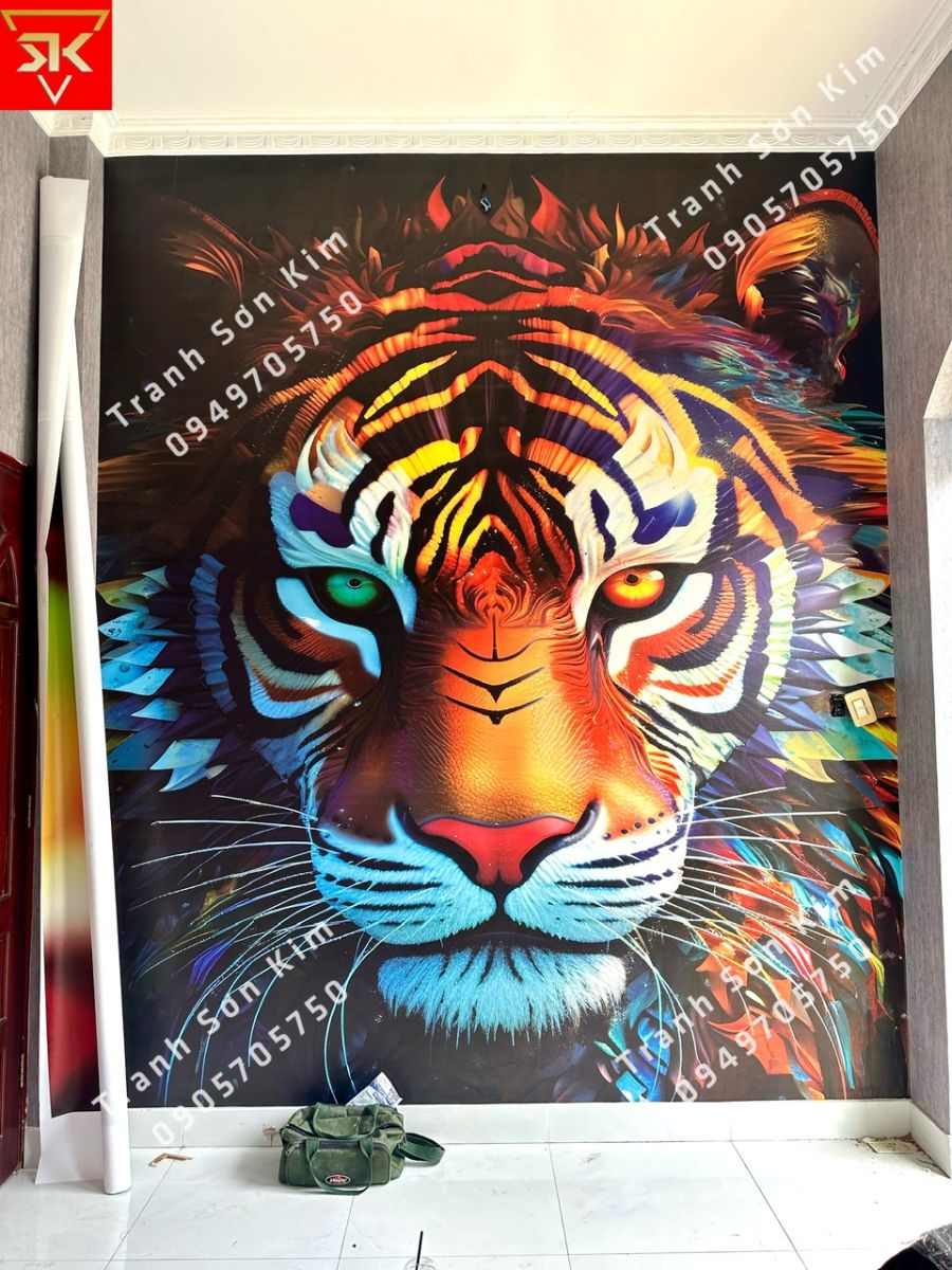 Thi công tranh dán tường mặt Hổ cho phòng xăm hình nghệ thuật