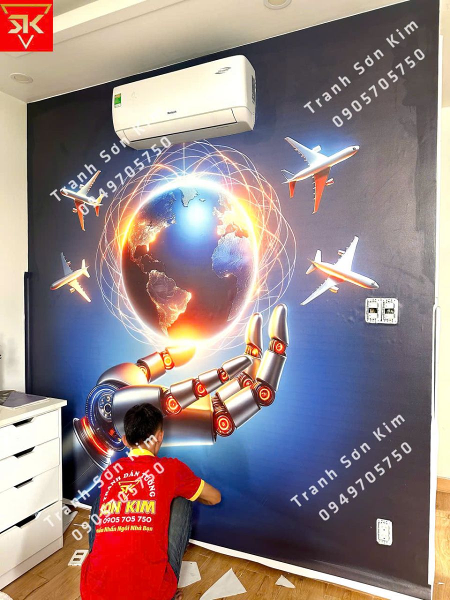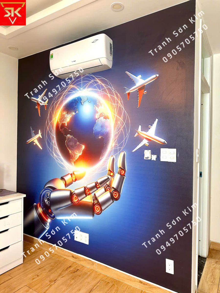 Thi công bức tranh dán tường (AI) trí tuệ nhân tạo trang trí phòng làm việc