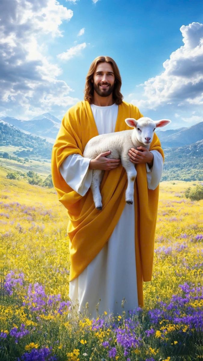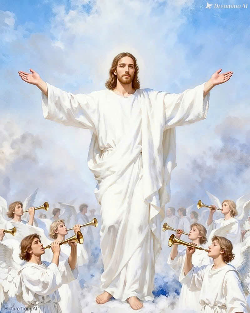 Bức tranh 3D chúa Giêsu Kitô phúc sinh tạo ra bằng nghệ thuật (AI) trí tuệ nhân tạo trang trí phòng thờ