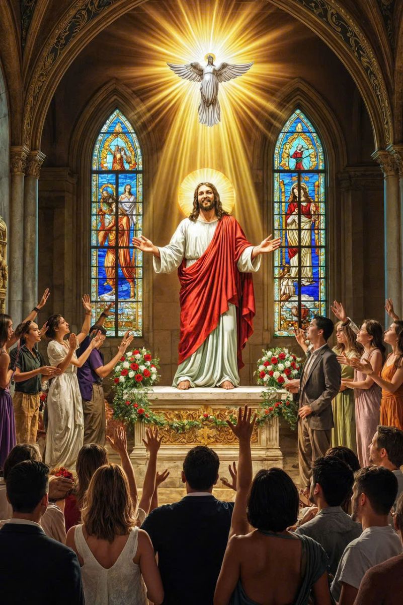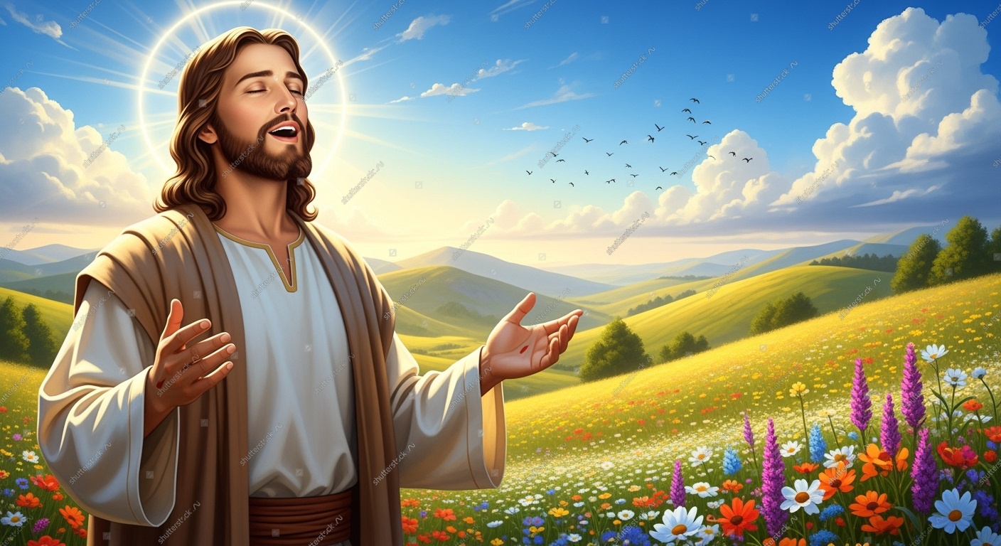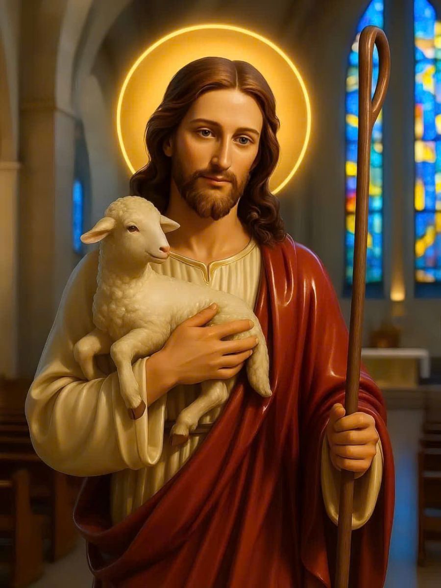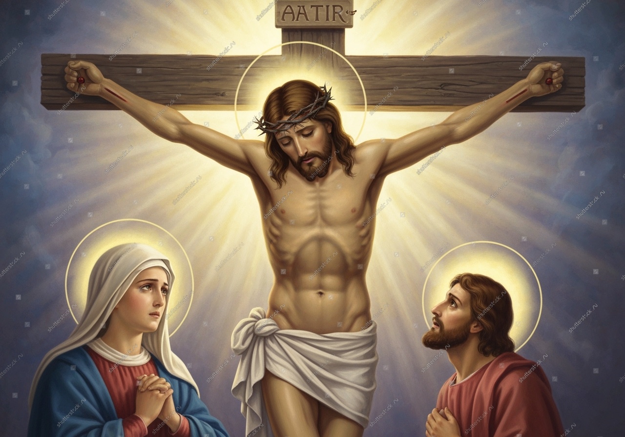 Tranh dán tường 3D chúa Giêsu Kitô tạo ra bằng nghệ thuật (AI) trí tuệ nhân tạo trang trí phòng thờ