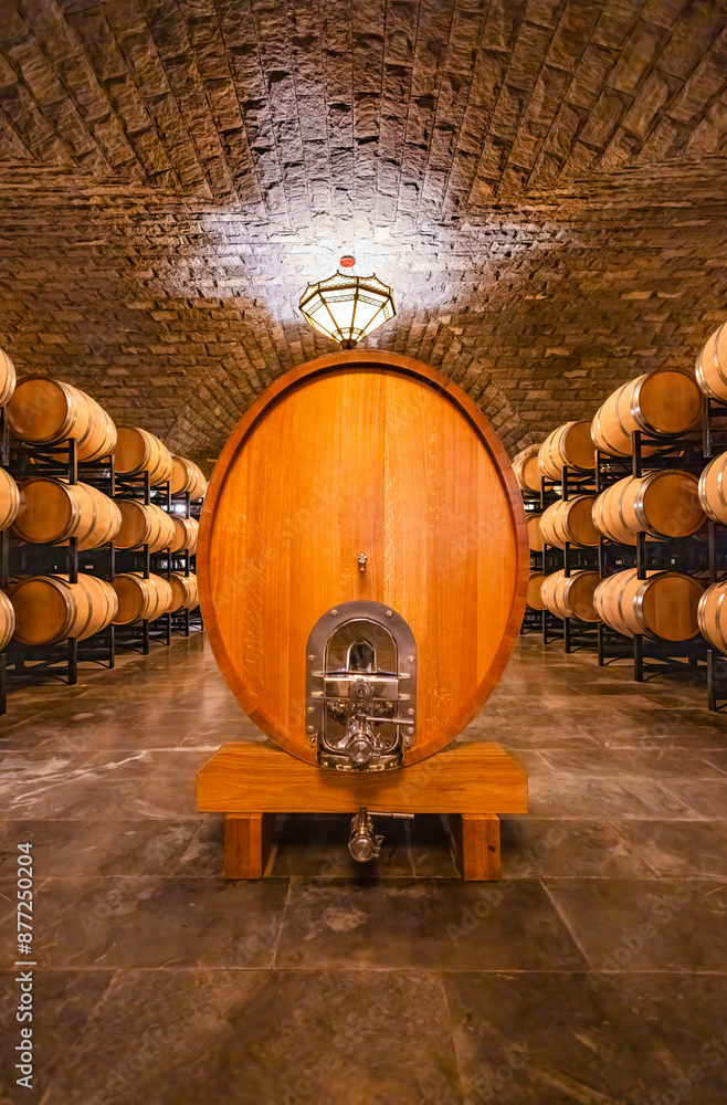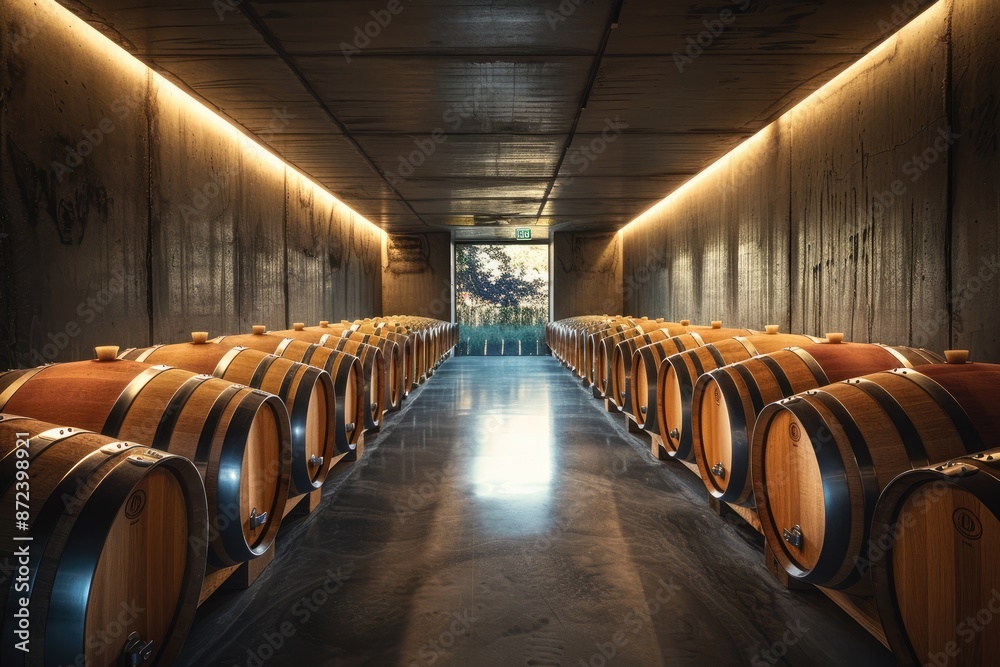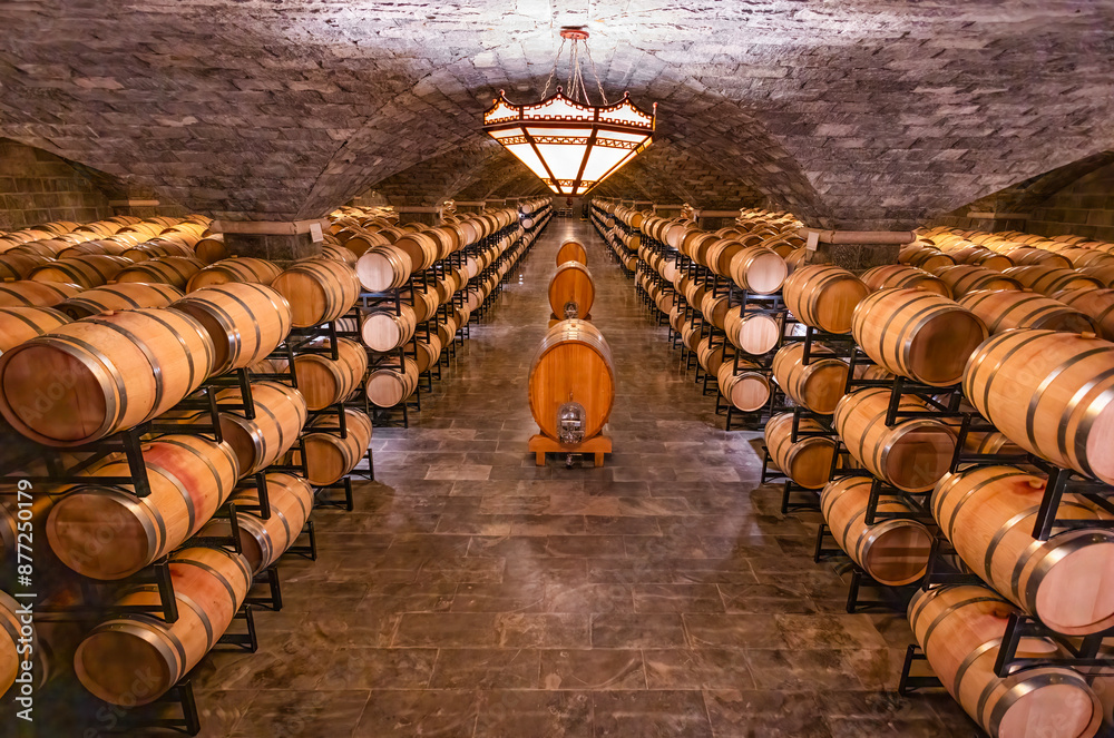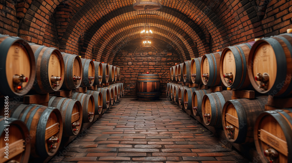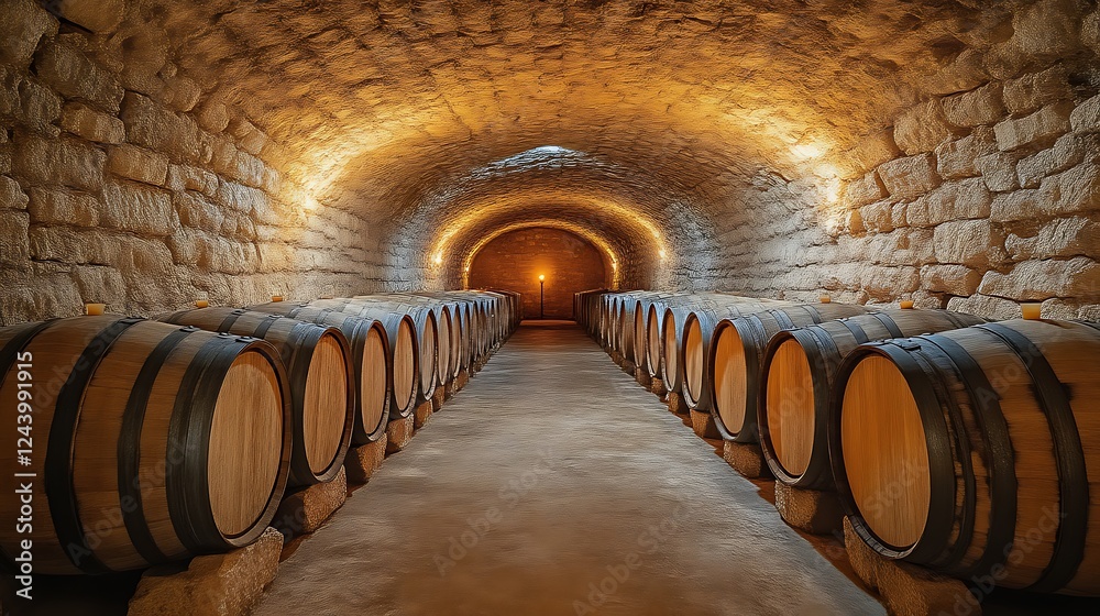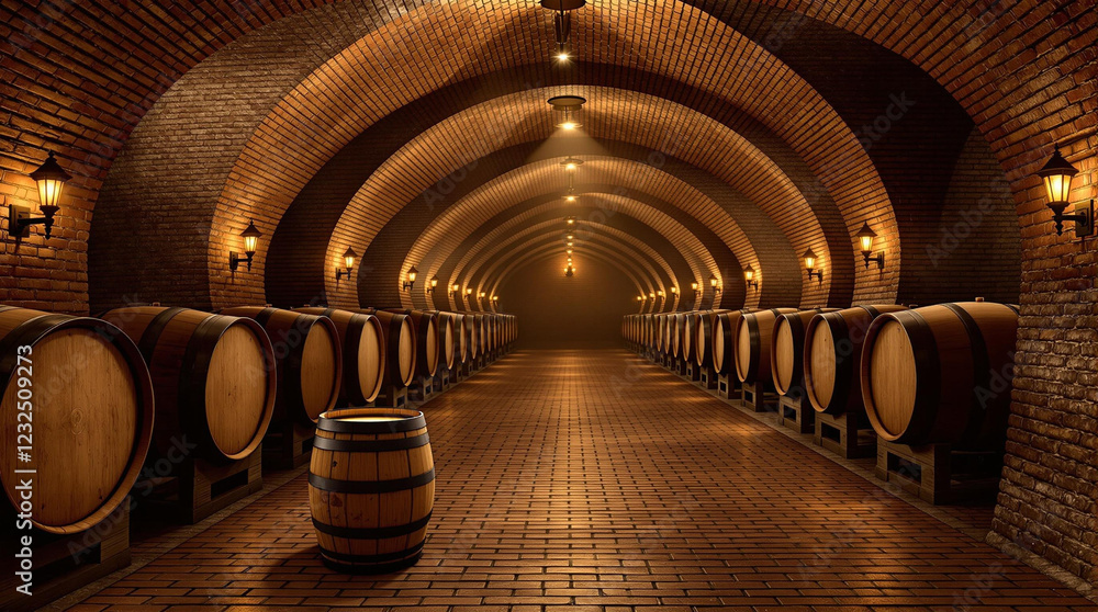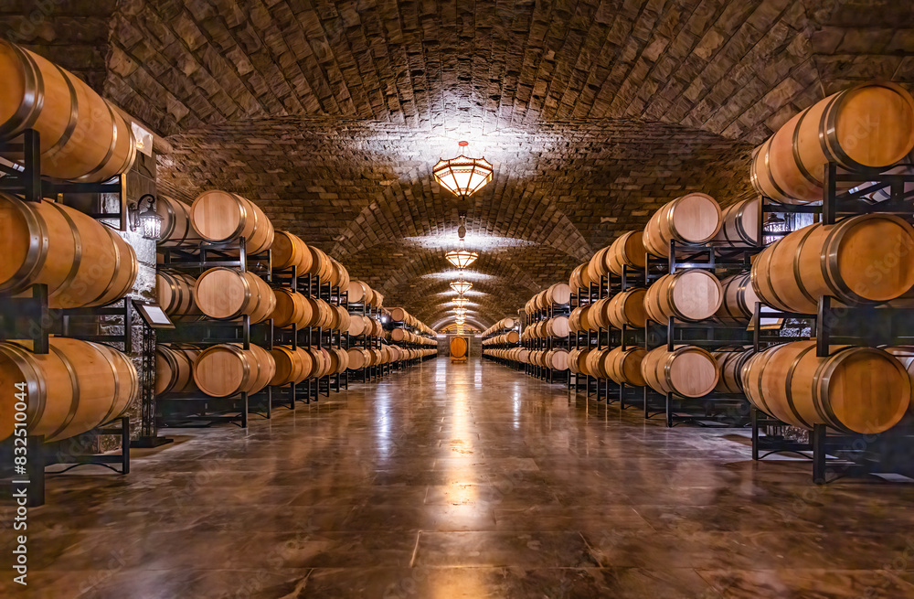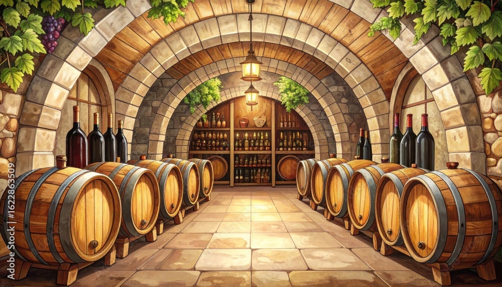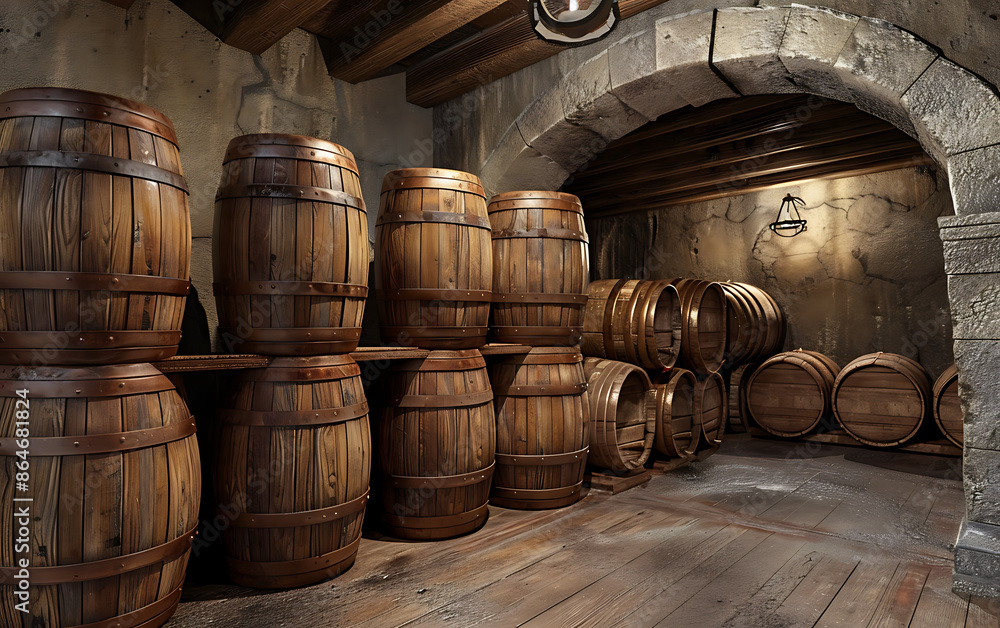 Bức tranh tường hầm rượu trang trí phòng VIP nhà hàng mang đến không gian sang trọng và ấm cúng. Hình ảnh hàng loạt thùng rượu gỗ xếp thành hàng dài trong một hầm rượu cổ điển tạo cảm giác sâu thẳm và chiều sâu không gian. Ánh sáng vàng nhạt từ những ngọn đèn trong hầm rượu càng làm tăng thêm sự ấm áp và lôi cuốn, khiến cho khách hàng cảm thấy như đang được thưởng thức bữa tiệc trong một không gian thực sự đẳng cấp. Bức tranh không chỉ là một điểm nhấn nghệ thuật mà còn giúp khách hàng tận hưởng không khí thư giãn, góp phần làm cho trải nghiệm ẩm thực trở nên trọn vẹn hơn.