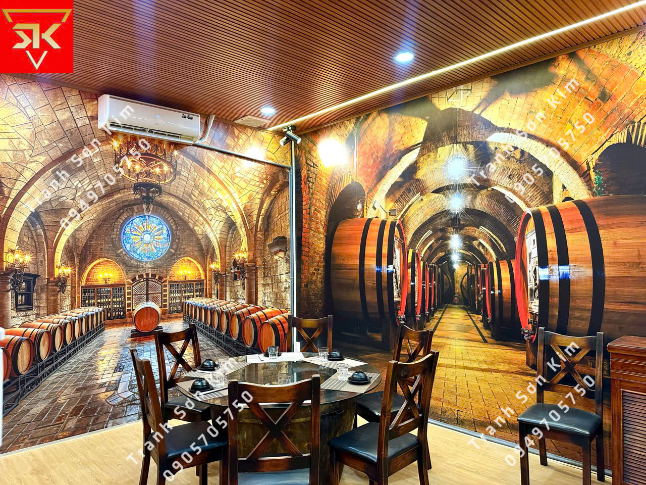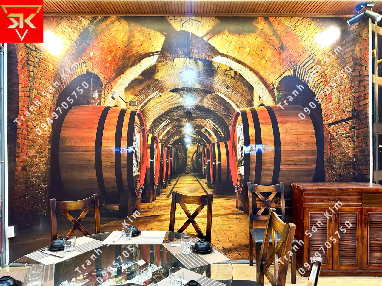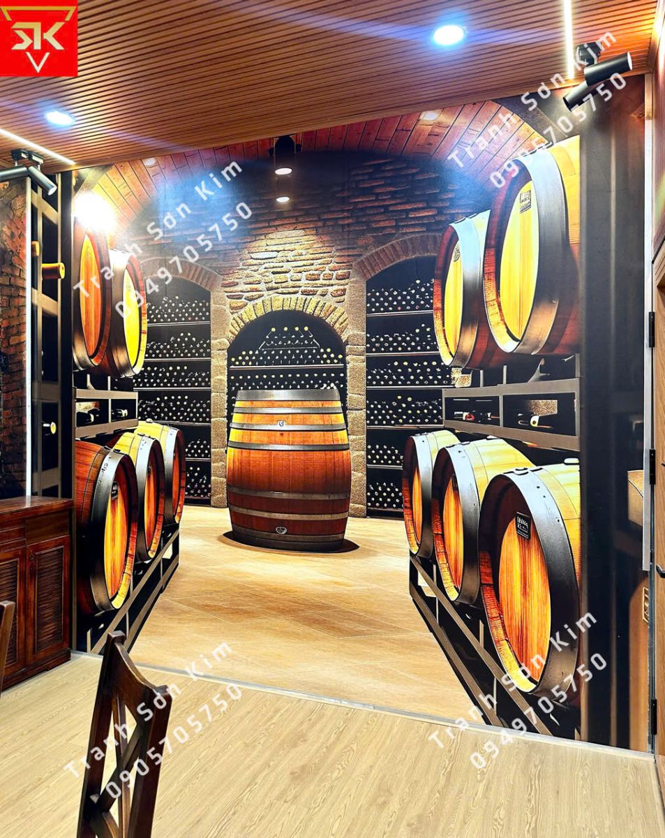 Tranh Dán Tường Hầm Rượu Trang Trí Phòng Vip Nhà Hàng Sang Trọng