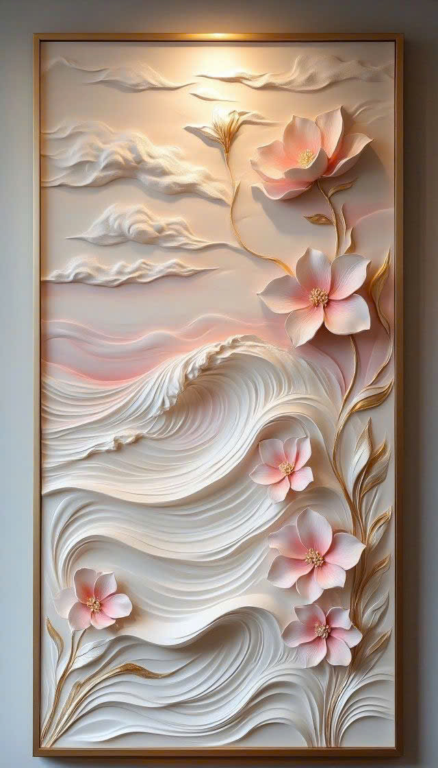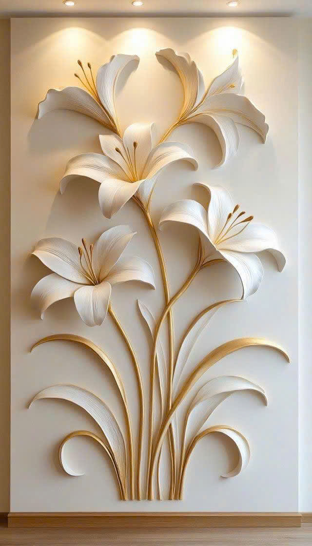 Những bức tranh dán tường hoa 3D in bằng công nghệ cao mang đến một làn gió mới cho không gian phòng khách, biến nơi đây trở thành tâm điểm của sự sang trọng và tinh tế. Hình ảnh những bông hoa được thiết kế sống động, với độ sâu và chi tiết vượt trội, tạo cảm giác như hoa thật đang khoe sắc ngay trong nhà. Các tông màu vàng đồng kết hợp cùng màu trắng tinh khôi làm nổi bật không gian, mang đến sự thanh lịch và ấm áp cho phòng khách. Không chỉ là điểm nhấn thẩm mỹ, tranh dán tường 3D còn giúp mở rộng không gian, tạo cảm giác rộng rãi và thoáng đãng hơn. Công nghệ in hiện đại giúp màu sắc và chất lượng của tranh bền đẹp theo thời gian, chống phai màu, phù hợp cho việc trang trí phòng khách, nơi gia đình quây quần và tiếp đón khách quý. Những bức tranh dán tường hoa 3D phòng khách không chỉ là sản phẩm trang trí mà còn là một tác phẩm nghệ thuật, nâng tầm đẳng cấp cho không gian sống của bạn.