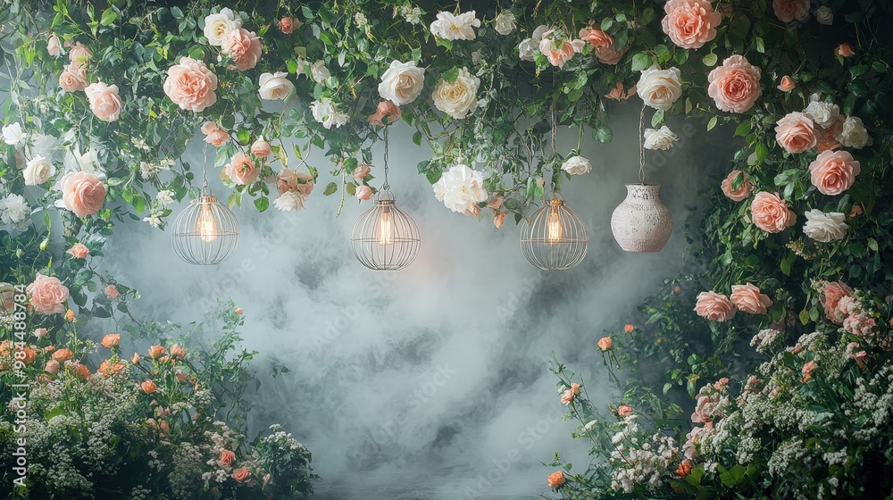 Những bông hoa hồng đỏ rực, biểu tượng của tình yêu cháy bỏng, hòa quyện cùng sắc hồng dịu dàng như thể cả căn phòng đang thở nhịp yêu thương. Tấm màn trắng buông nhẹ tựa như tấm rèm che chở, bao bọc không gian riêng tư, nơi tình yêu được nuôi dưỡng và lớn lên từng ngày.