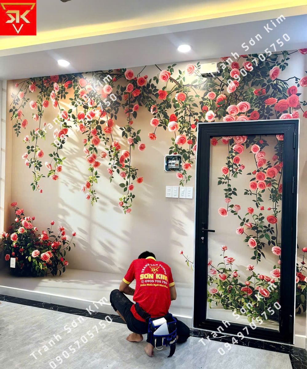 Tranh dán tường hoa hồng ấn tượng tại Sơn Kim.!