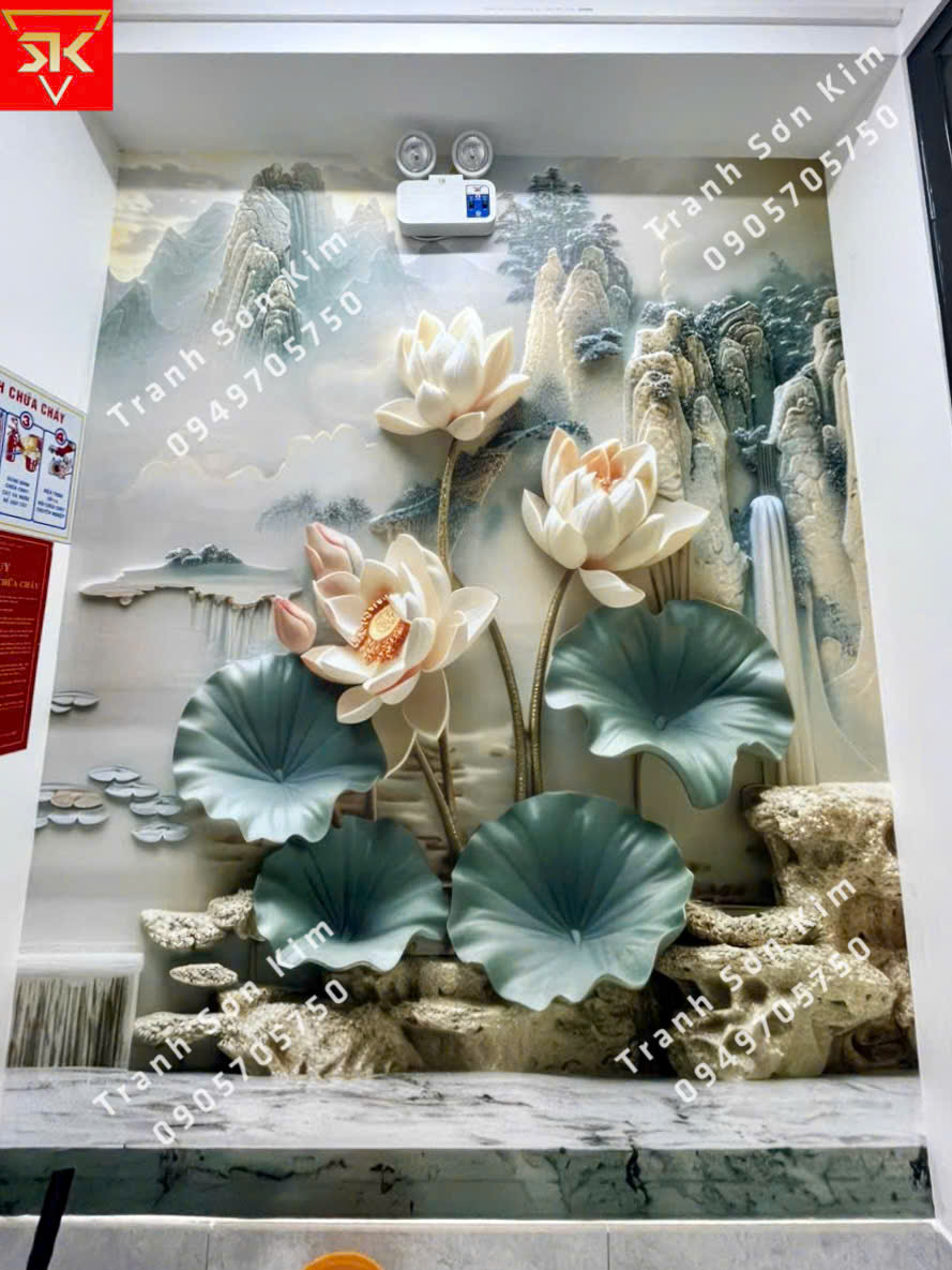 Tuyển chọn những mẫu tranh dán tường 3D hoa sen đẹp tại Sơn Kim !