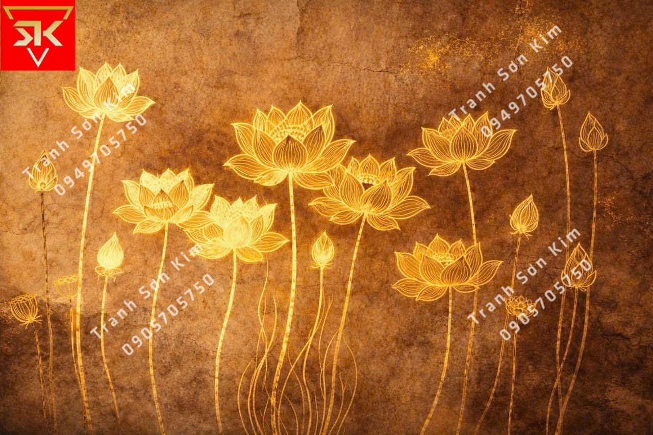 Tranh dán tường Sơn Kim hiện đang cung cấp các mẫu tranh hoa sen được in trên nền vải lụa kim tuyến công nghệ Nhật Bản có thể dùng để dán tường, các không gian nội thất : phòng khách, phòng ngủ, phòng bếp, phòng thờ, văn phòng, nhà hàng, quán ăn, quán chay, quán cafe ….