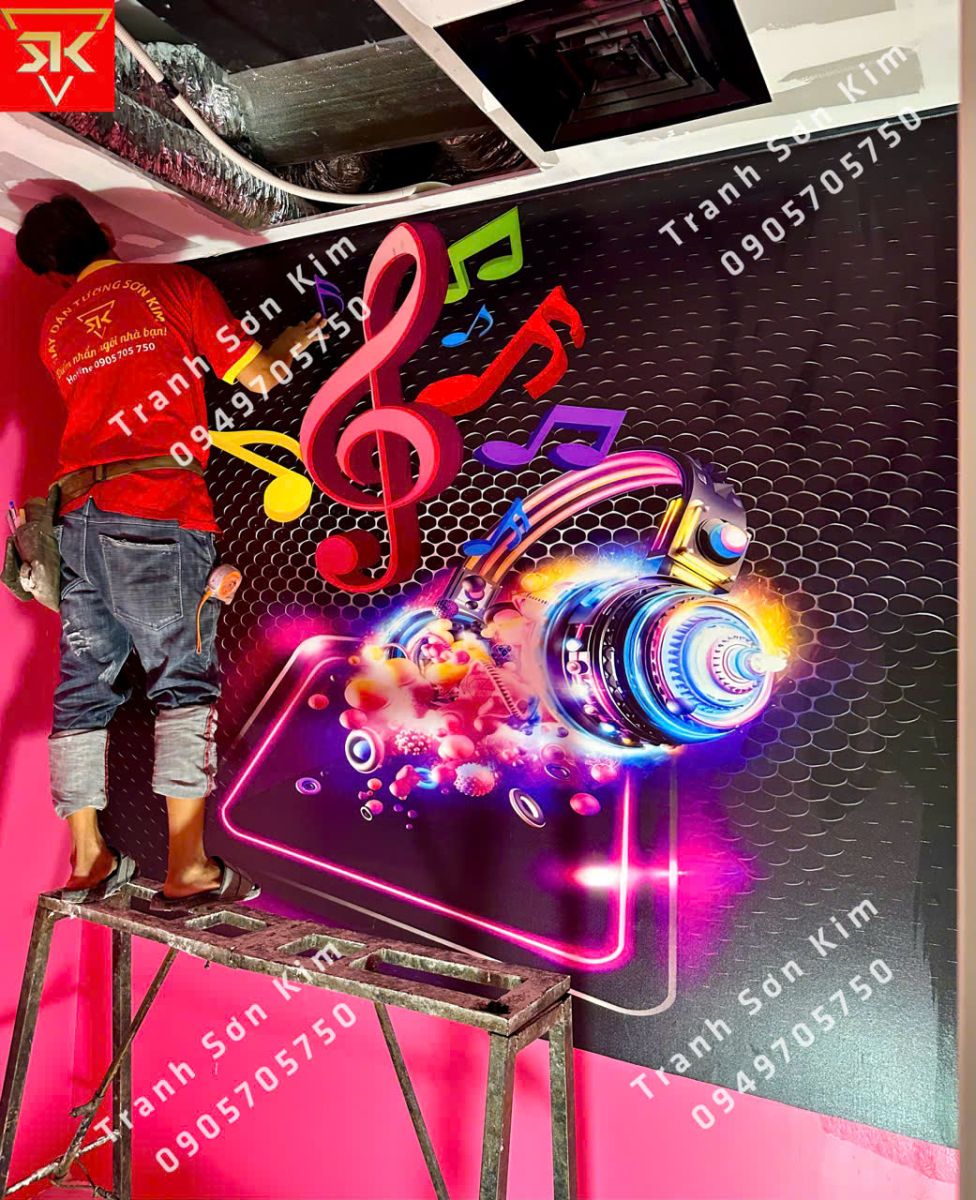 Thi công tranh dán tường 3d cho phòng music box