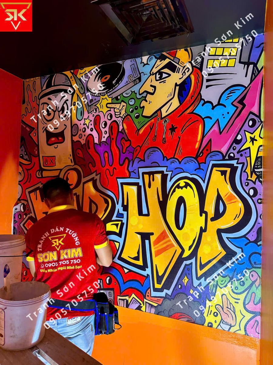 Trong không gian phòng Music Box dành cho giới trẻ, tranh dán tường 3D hiện đại đóng vai trò như một “phông nền cảm xúc” – nơi âm nhạc và nghệ thuật đường phố hòa quyện thành chất riêng đầy nổi bật.