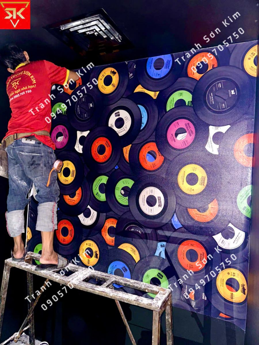 Tranh dán tường chủ đề vinyl: Mang đến không khí retro và cổ điển, phù hợp với những người yêu thích nhạc vinyl.