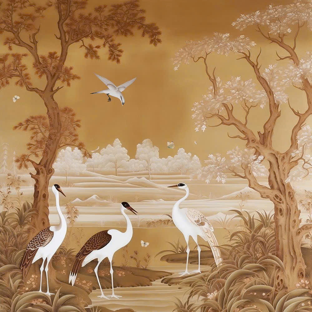 Tranh Dán Tường Phong Cách Indochine Lấy Cảm Hứng Từ Thiên Nhiên Động Vật Hoang Dã