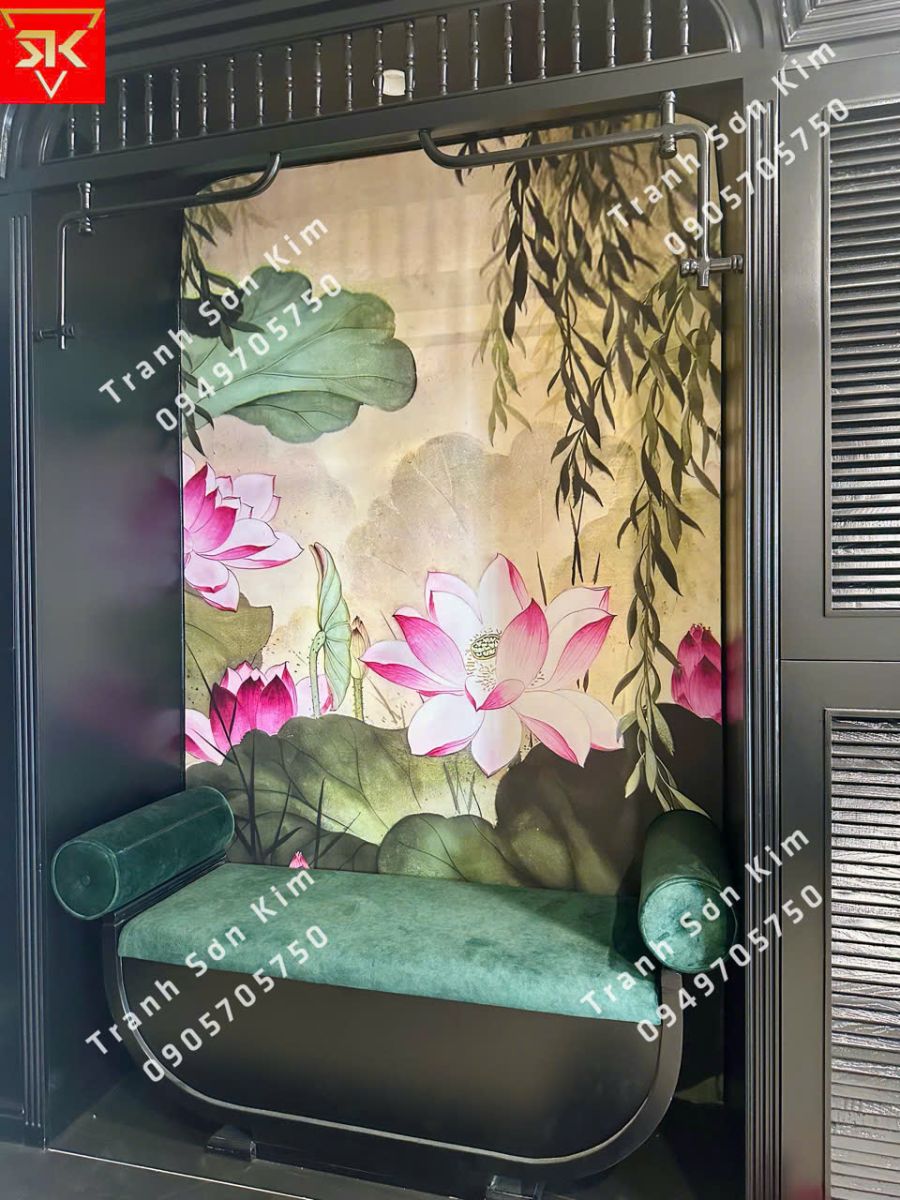 Bức tranh này không chỉ làm cho không gian phòng VIP trở nên sống động và cuốn hút hơn mà còn mang lại cảm giác thư thái. Phong cách Indochine còn mang ý nghĩa về sự giao thoa văn hóa, tạo cảm giác gần gũi nhưng vẫn rất sang trọng và tinh tế.