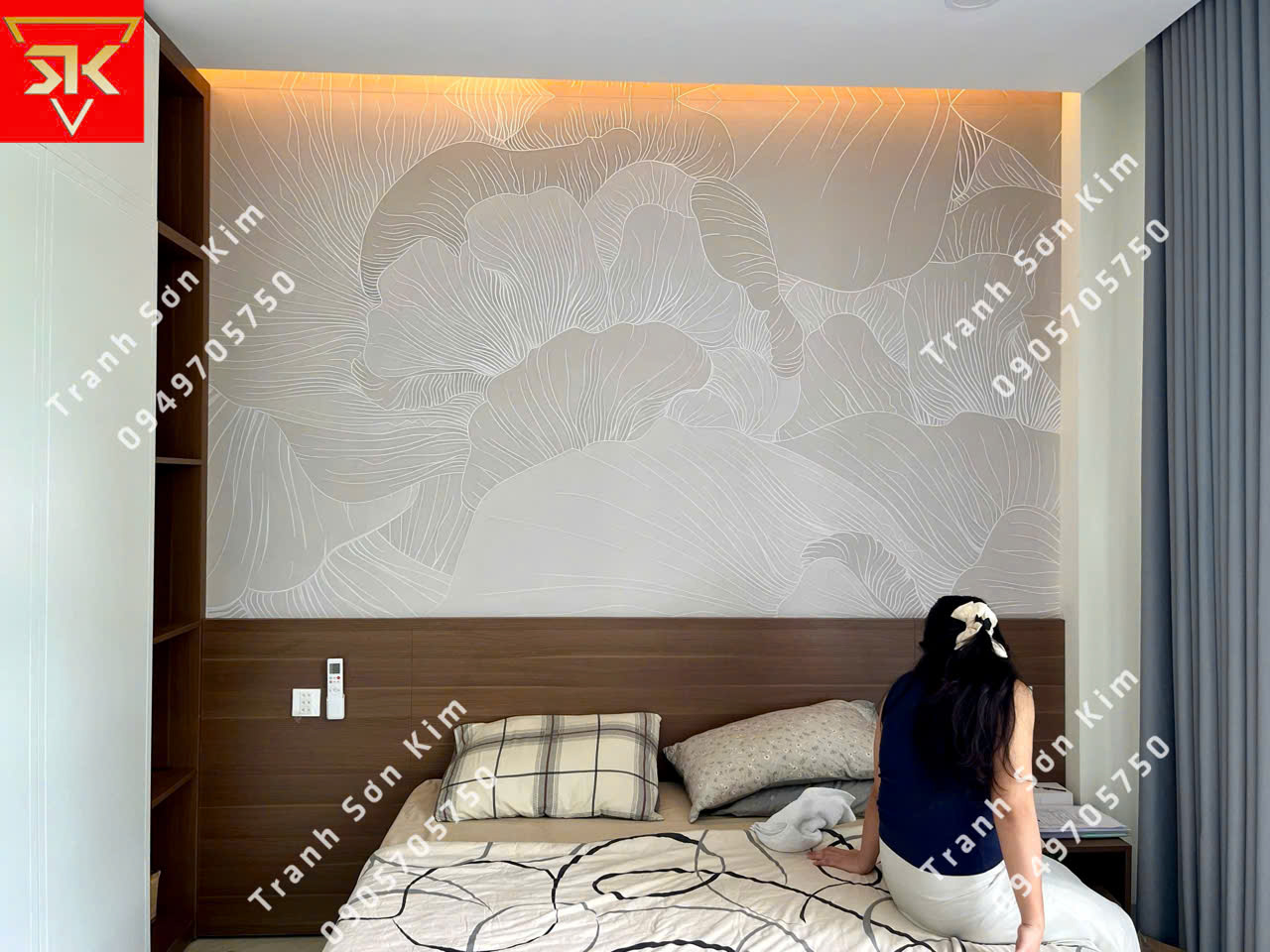 Thi công tranh dán tường điêu khắc phòng ngủ