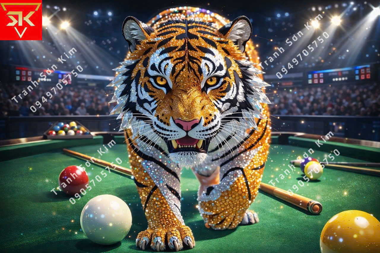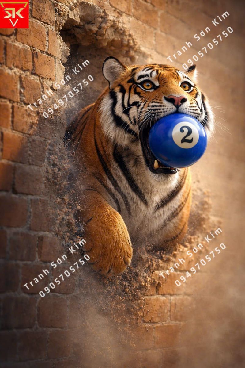 mẫu tranh dán tường 3D con Hổ chơi bida mới nhất tại Sơn Kim