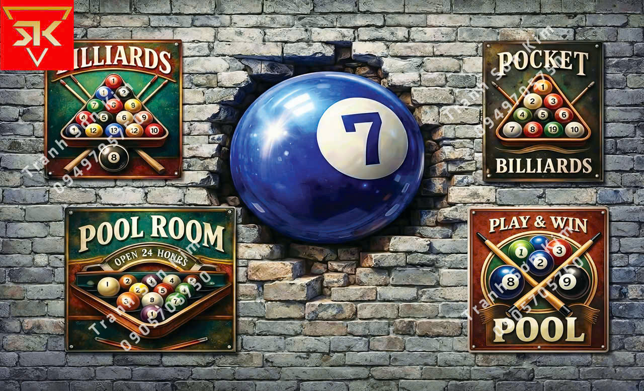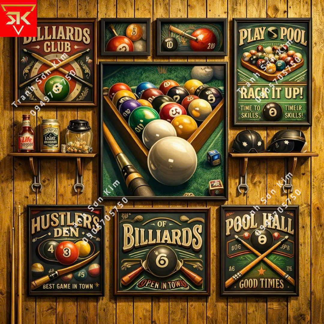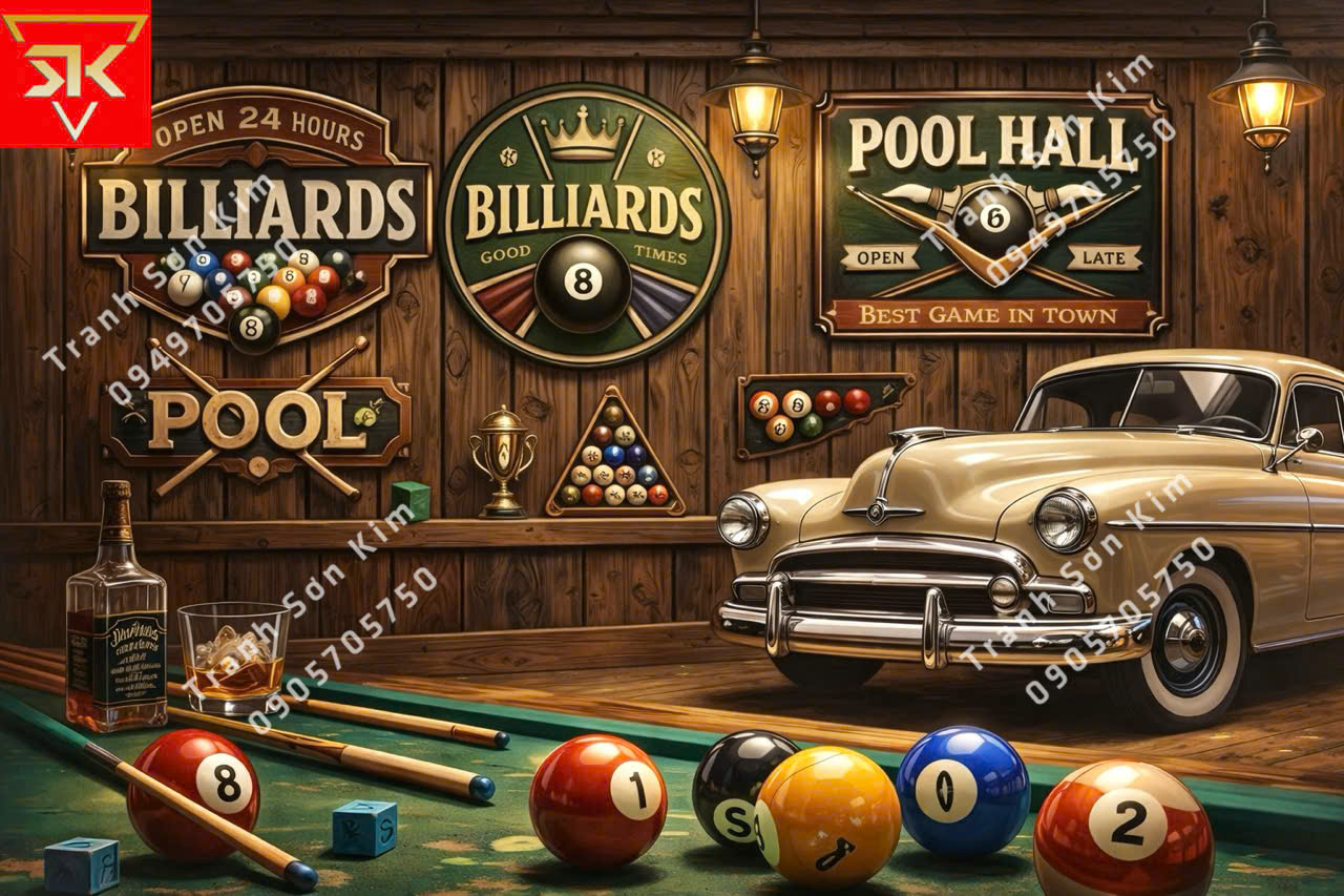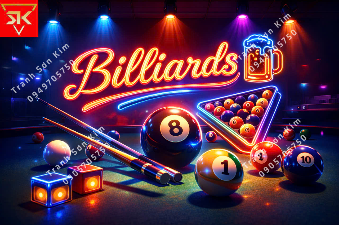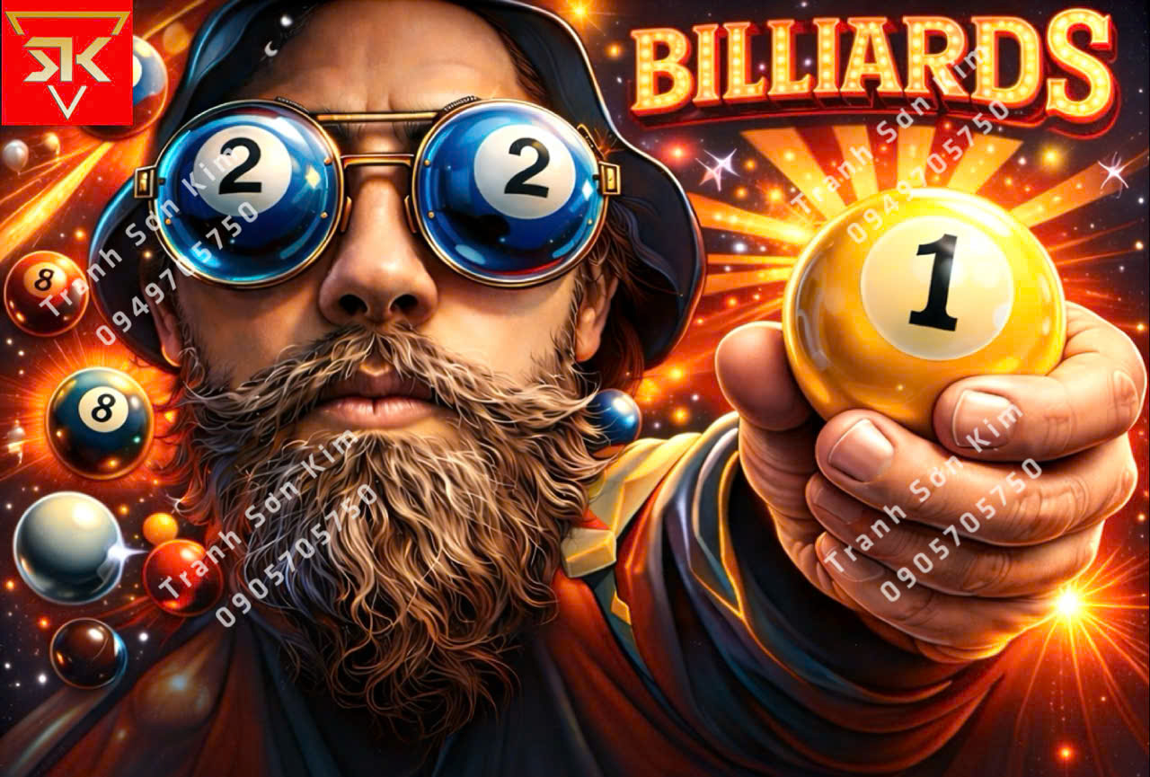 Sơn Kim nhận thiết kế tranh bida theo yêu cầu khách hàng, phong cách độc - lạ – không trùng mẫu. Tranh in công nghệ cao, hiệu ứng 3D nổi khối sắc nét, màu bền đẹp theo thời gian. Nhận in mọi kích thước theo không gian quán, từ logo đến vách lớn.
