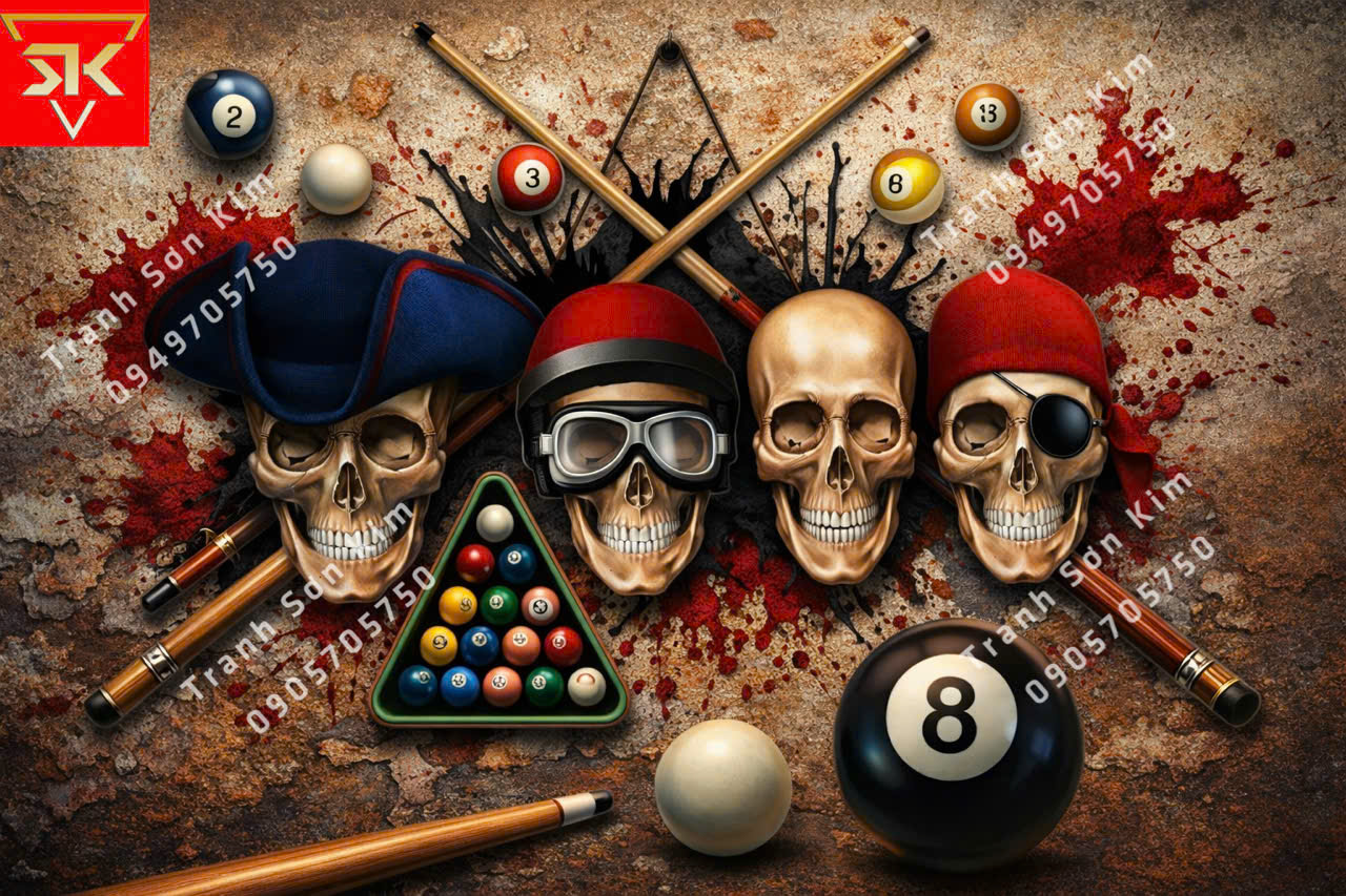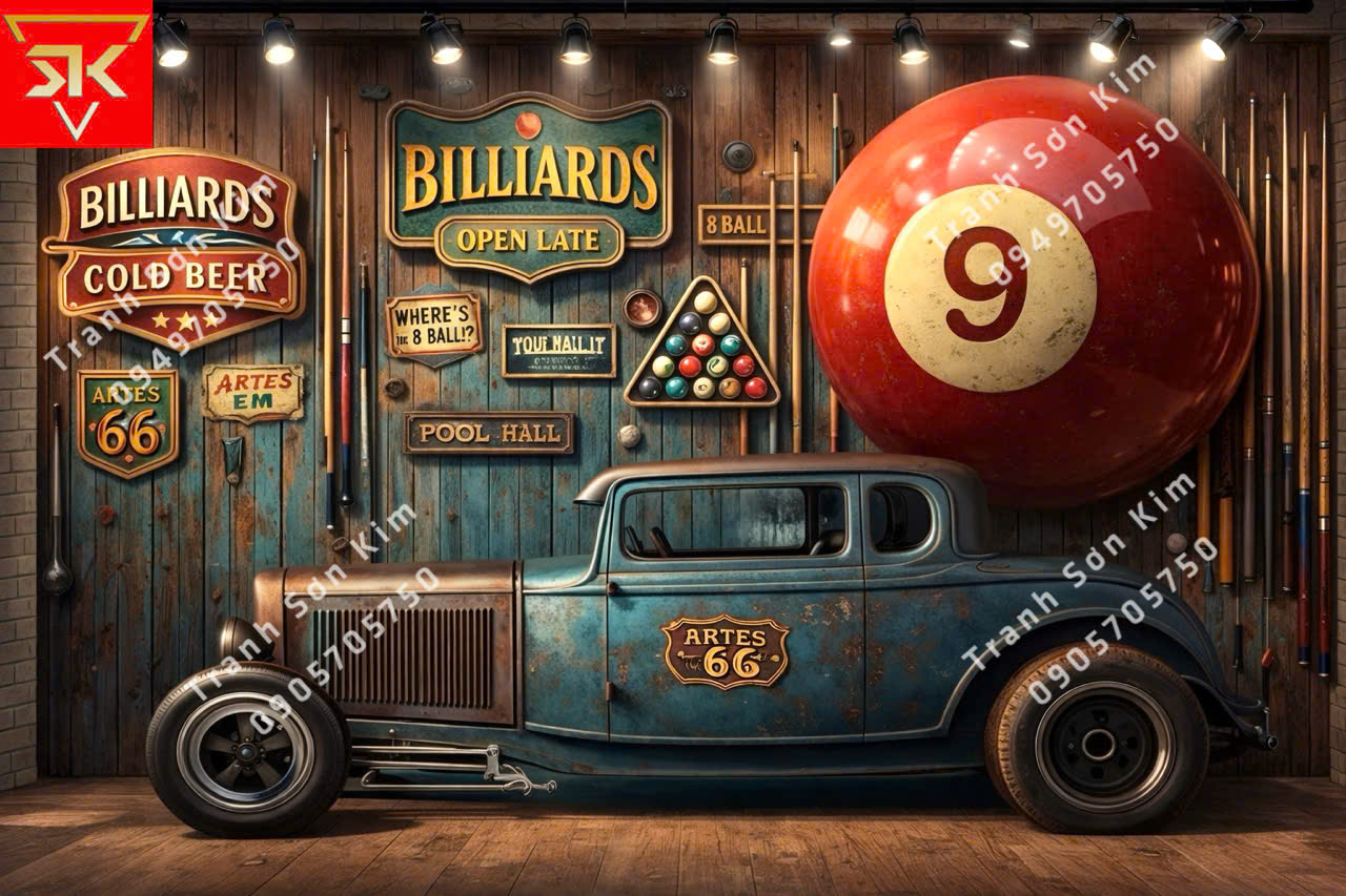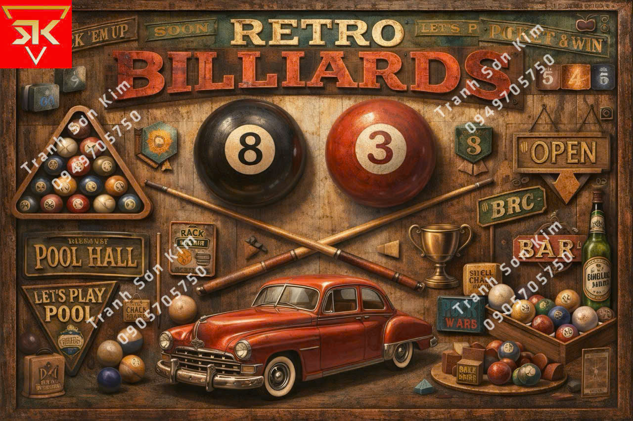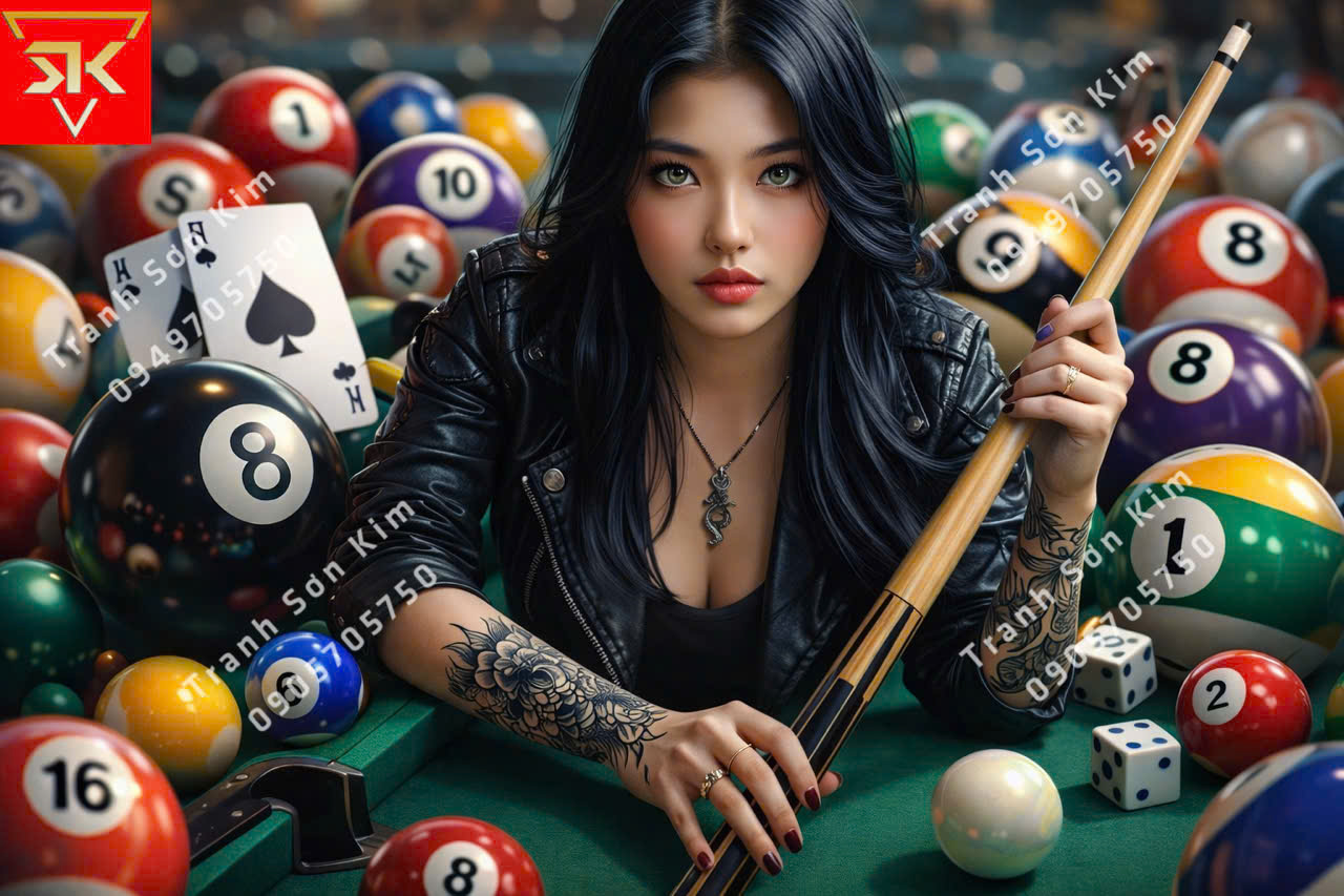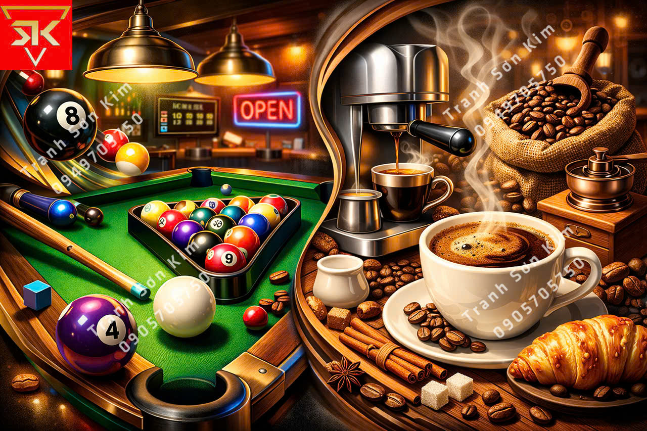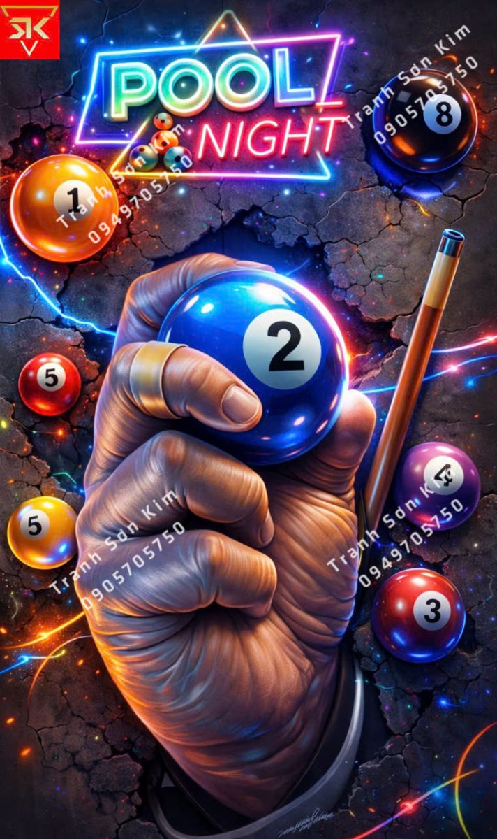 Sơn Kim nhận thiết kế tranh bida theo yêu cầu khách hàng, phong cách độc - lạ – không trùng mẫu. Tranh in công nghệ cao, hiệu ứng 3D nổi khối sắc nét, màu bền đẹp theo thời gian. Nhận in mọi kích thước theo không gian quán, từ logo đến vách lớn.