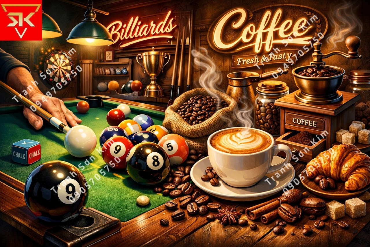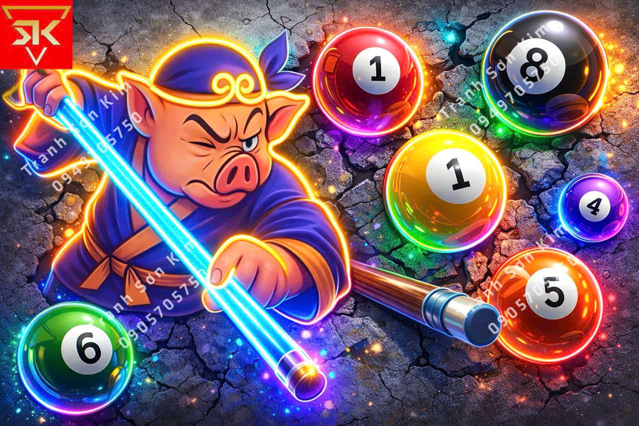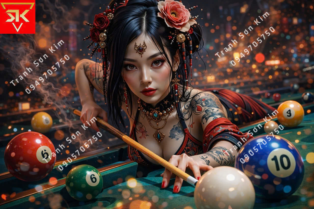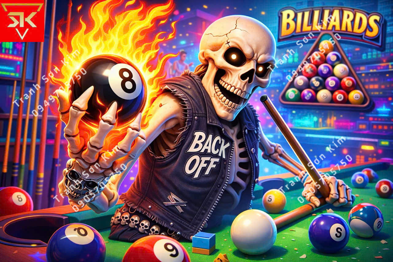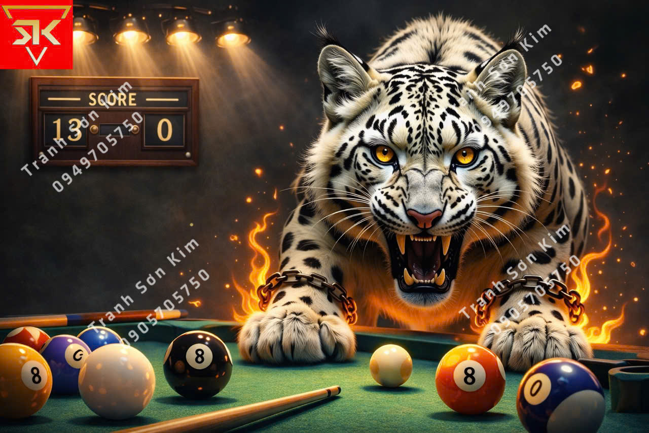 Sơn Kim nhận thiết kế tranh bida theo yêu cầu khách hàng, phong cách độc - lạ – không trùng mẫu. Tranh in công nghệ cao, hiệu ứng 3D nổi khối sắc nét, màu bền đẹp theo thời gian. Nhận in mọi kích thước theo không gian quán, từ logo đến vách lớn.
