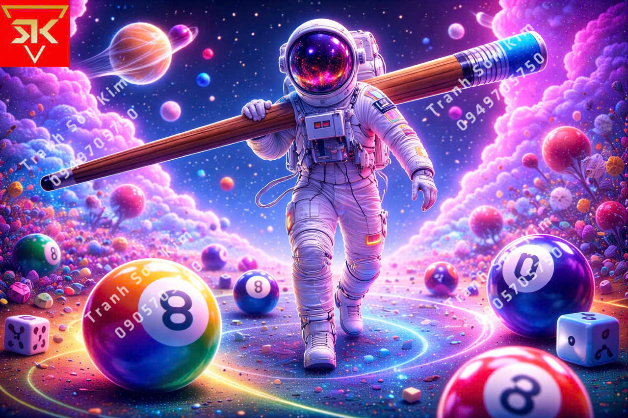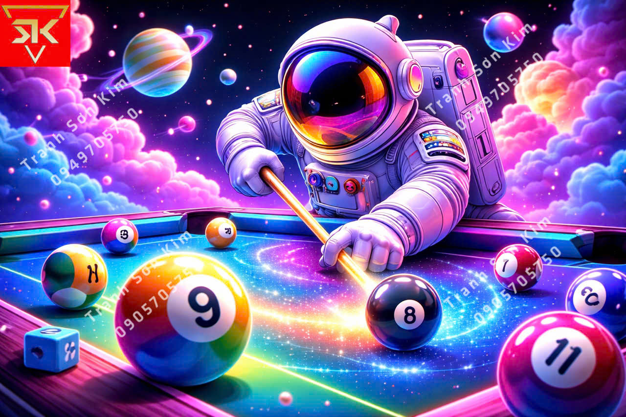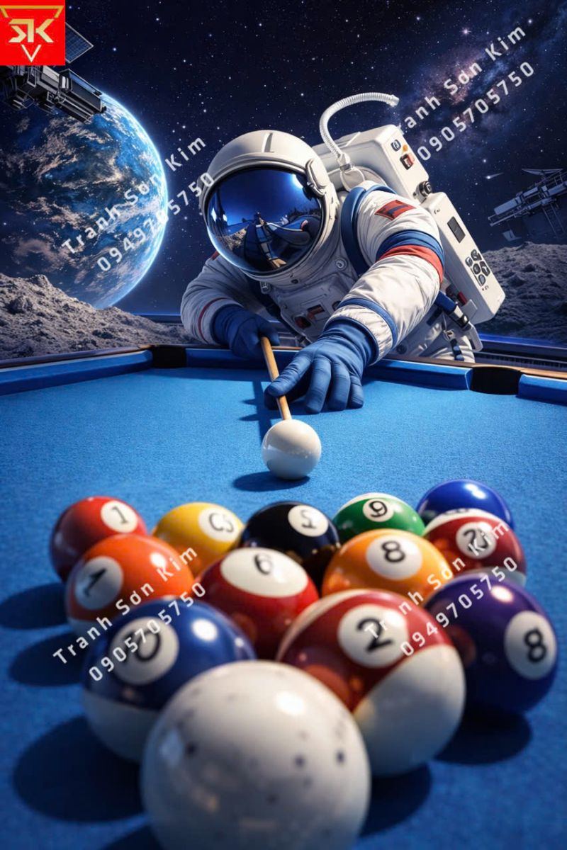 Bức tranh dán tường (AI) Phi Hành Gia trang trí clb bida diểm nhấn ấn tượng.