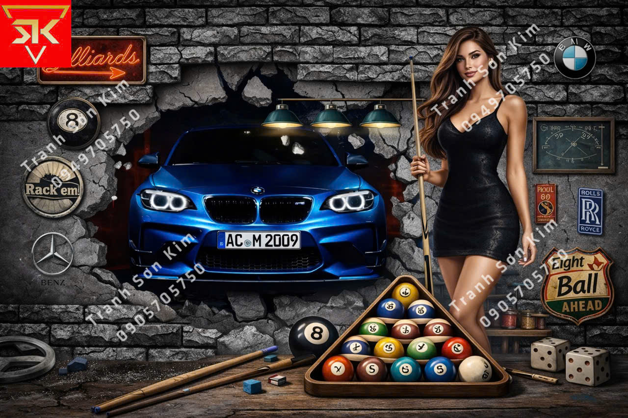 Tranh 3D Dán Tường Quán Bida Độc Đáo - Cực Chất