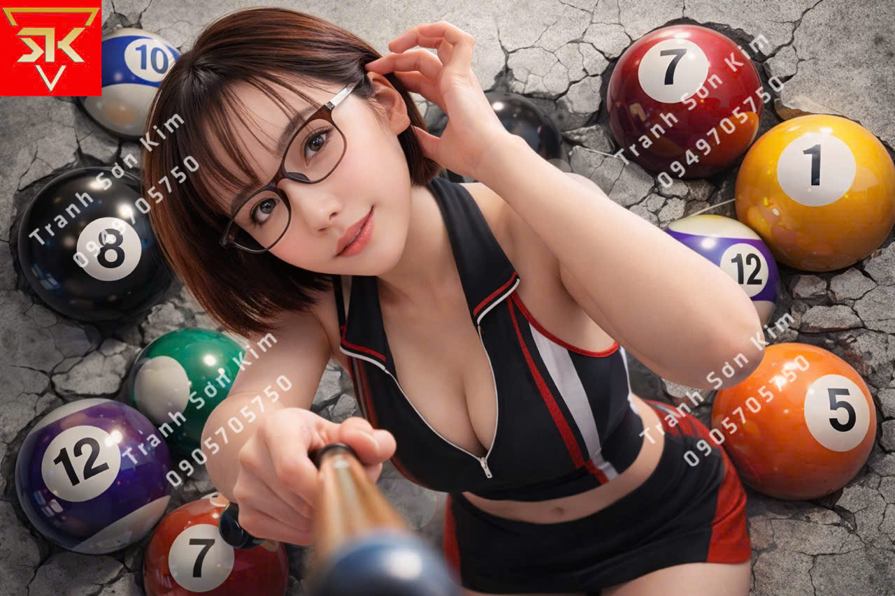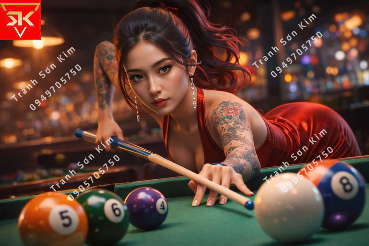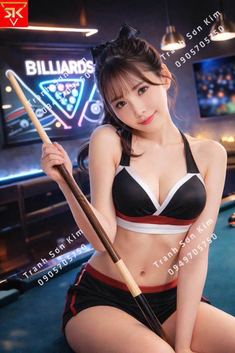 mẫu tranh dán tường 3D bida hai cô gái mới nhất tại Sơn Kim