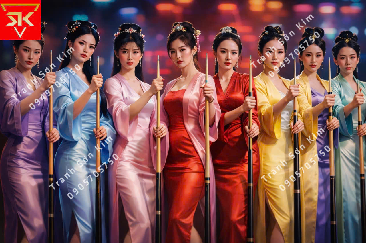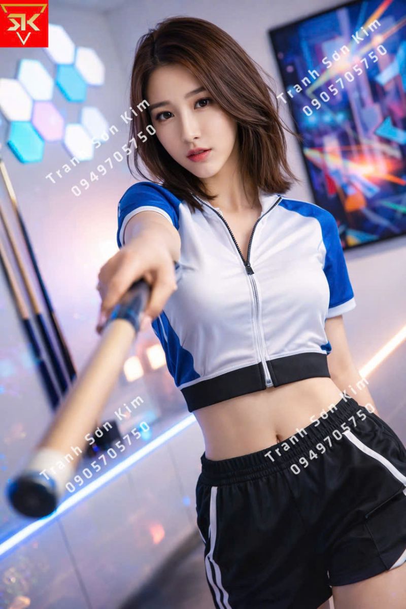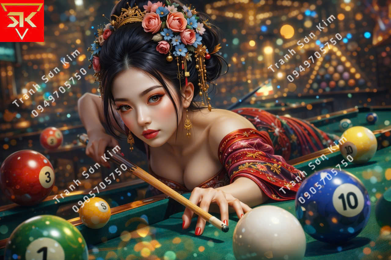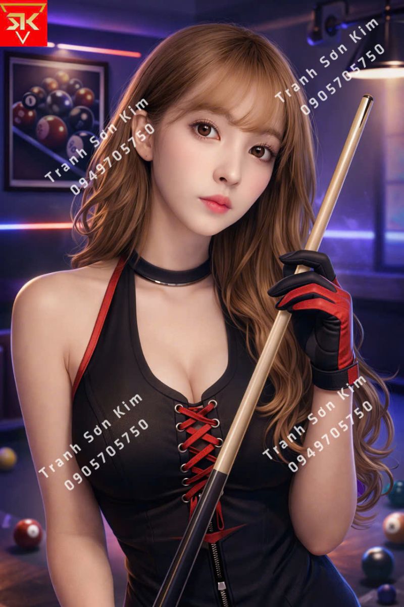 mẫu tranh dán tường 3D bida hai cô gái mới nhất tại Sơn Kim
