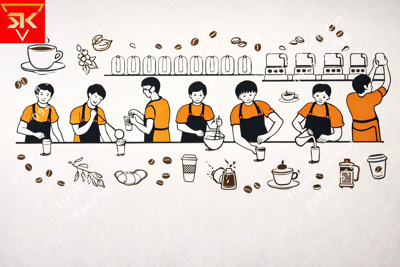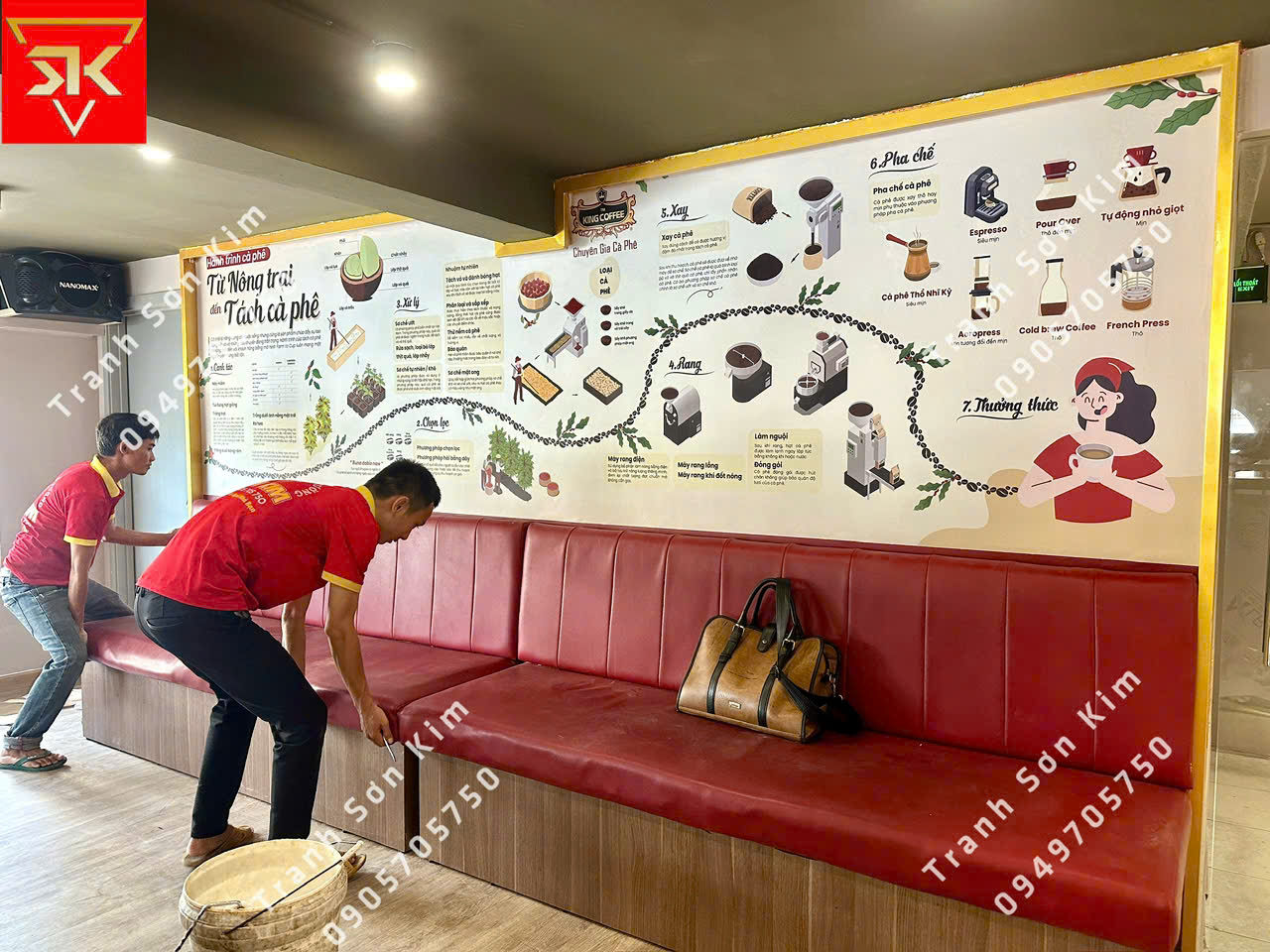Thi công tranh dán tường quán cafe và bánh ngọt