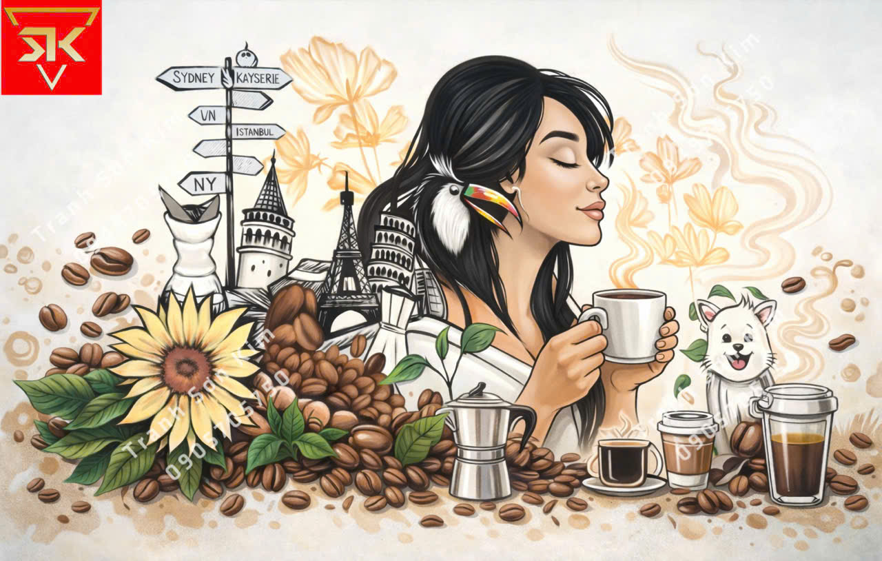 Tranh Dán Tường Quán Cafe Tạo View Cực Chất, Check-In Cực Xinh