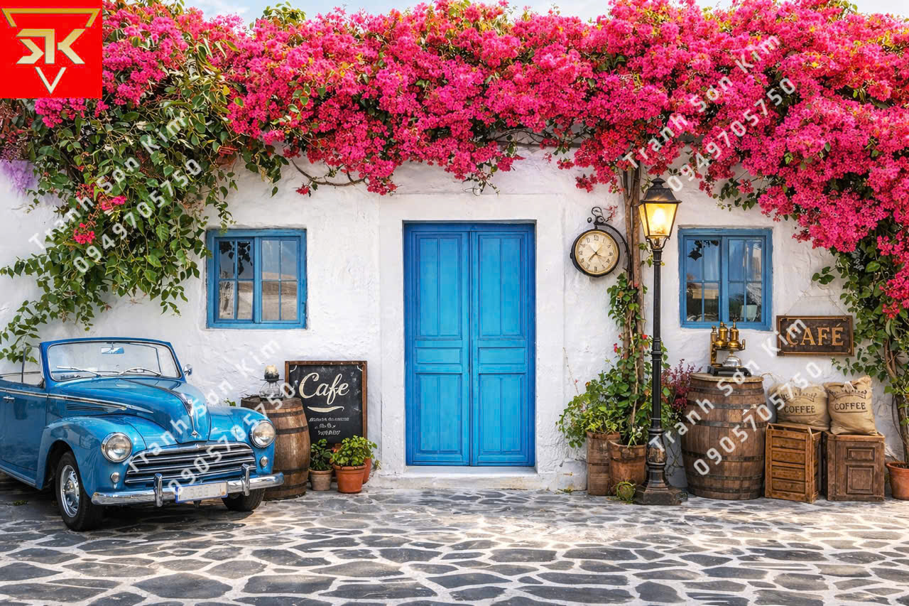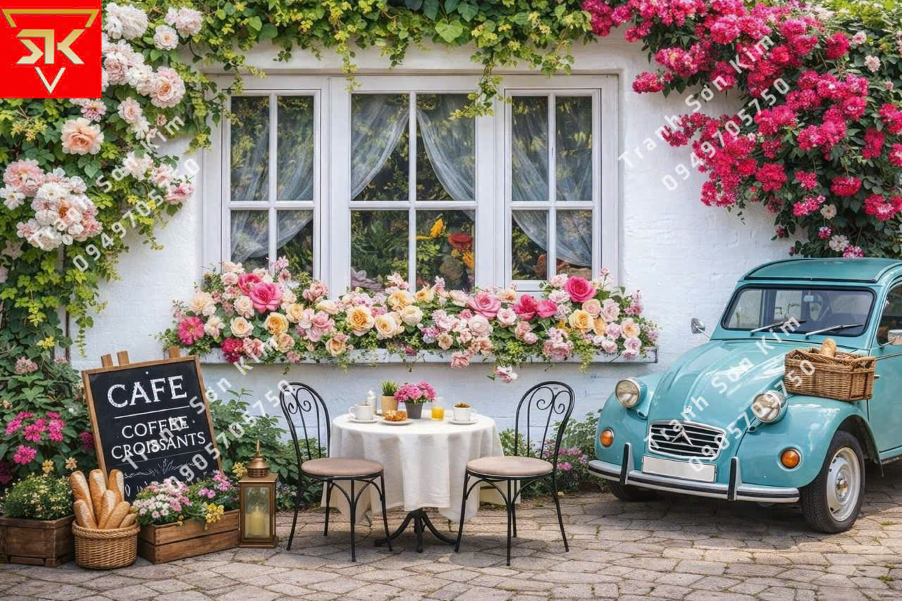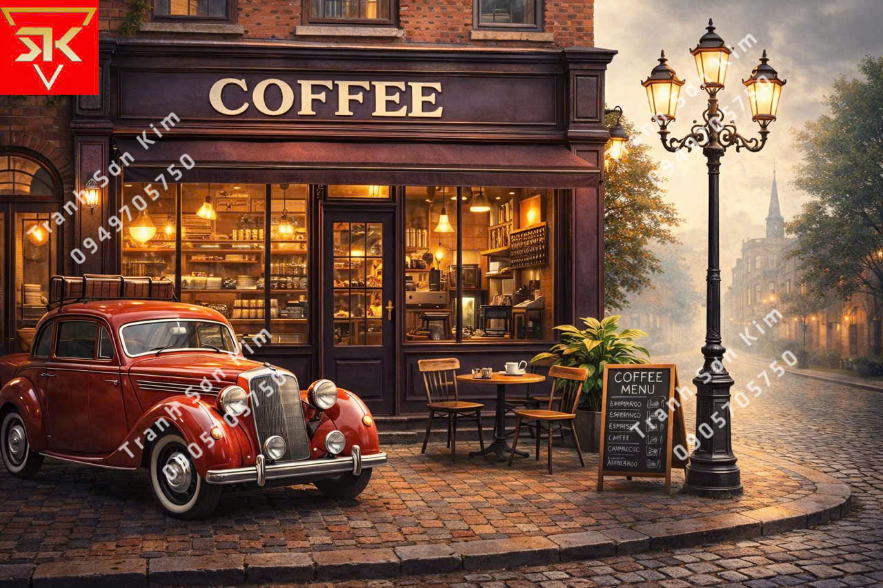 Thi công tranh dán tường (A.I) cảnh đường phố châu âu trang trí quán cafe
