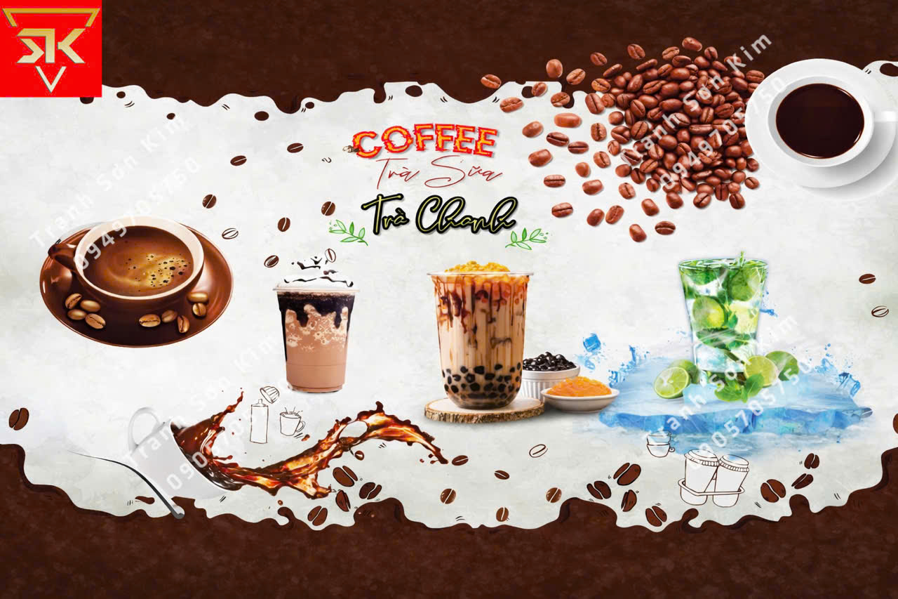Sự kết hợp giao thoa giữa tranh dán tường cafe và trà sữa.
