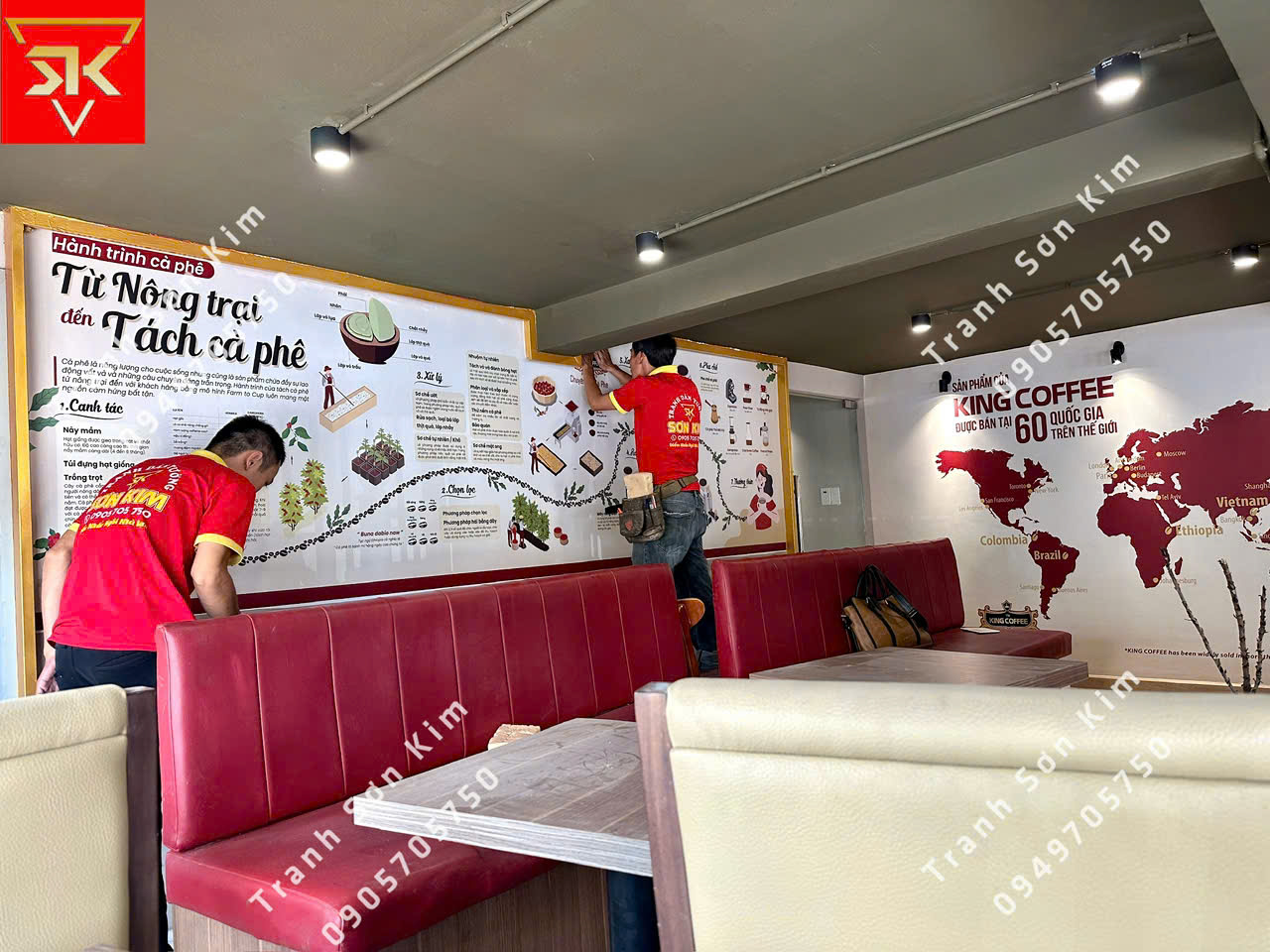 Thi công tranh dán tường 3D cho quán cafe Trung Nguyên.