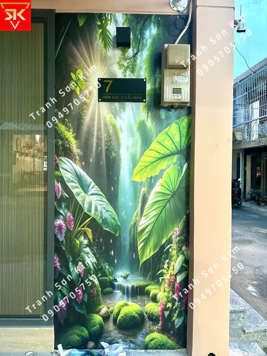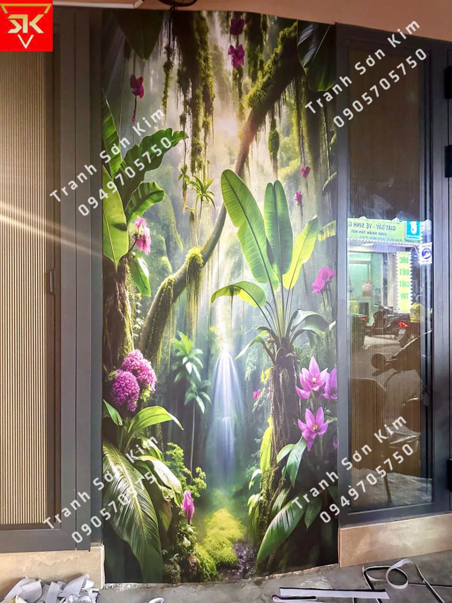 thi công tranh dán tường 3d cho quán cafe Miền Thảo Mộc