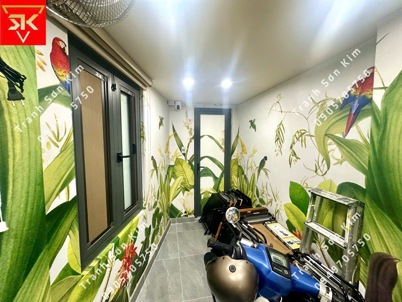 thi công tranh dán tường hoa lá khổ lớn cho giếng trời quán cafe, trà sữa