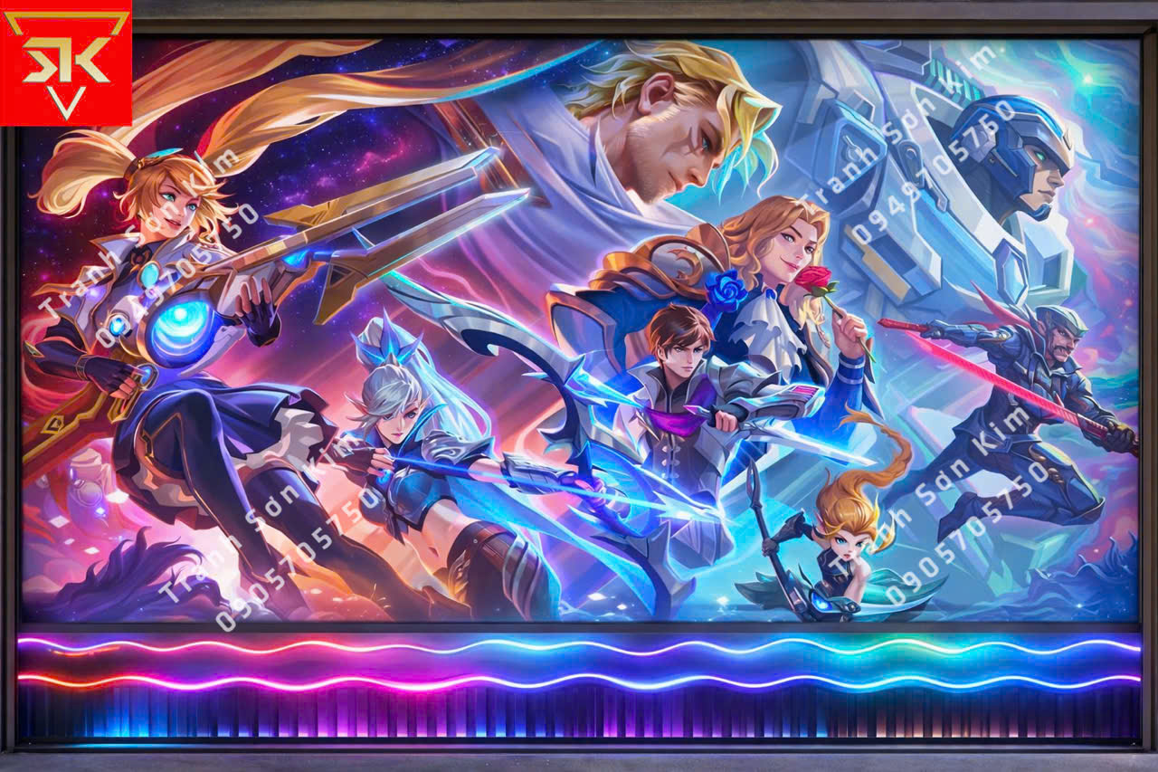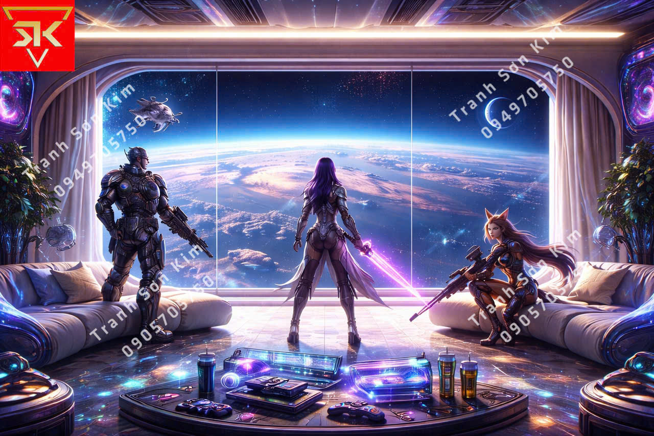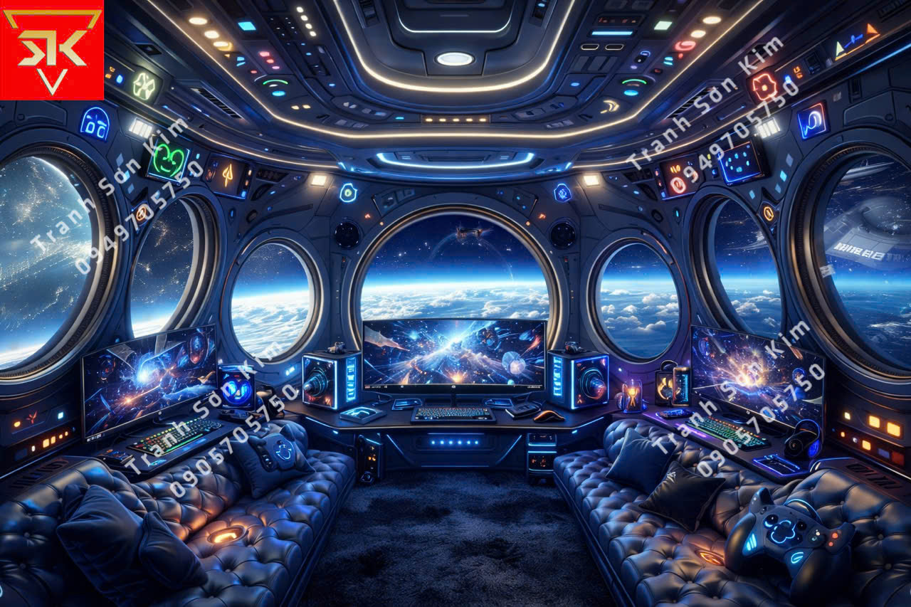 Sơn Kim hướng đến xây dựng cả một “bối cảnh gaming”. Từng bức tranh 3D được lựa chọn theo chủ đề hành động, eSports, sci-fi hoặc thế giới game nổi tiếng, bố cục mạnh mẽ, chiều sâu rõ nét, tạo cảm giác không gian mở rộng và chuyển động liên tục. Khi bước vào quán, game thủ có cảm giác như đang đứng trong chính trận đấu mình sắp chơi.