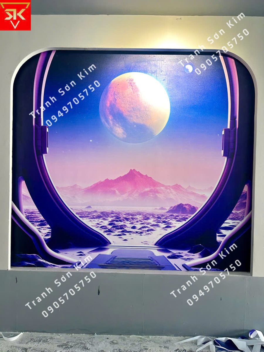 Thi công tranh dán tường vũ trụ 3d cho phòng game