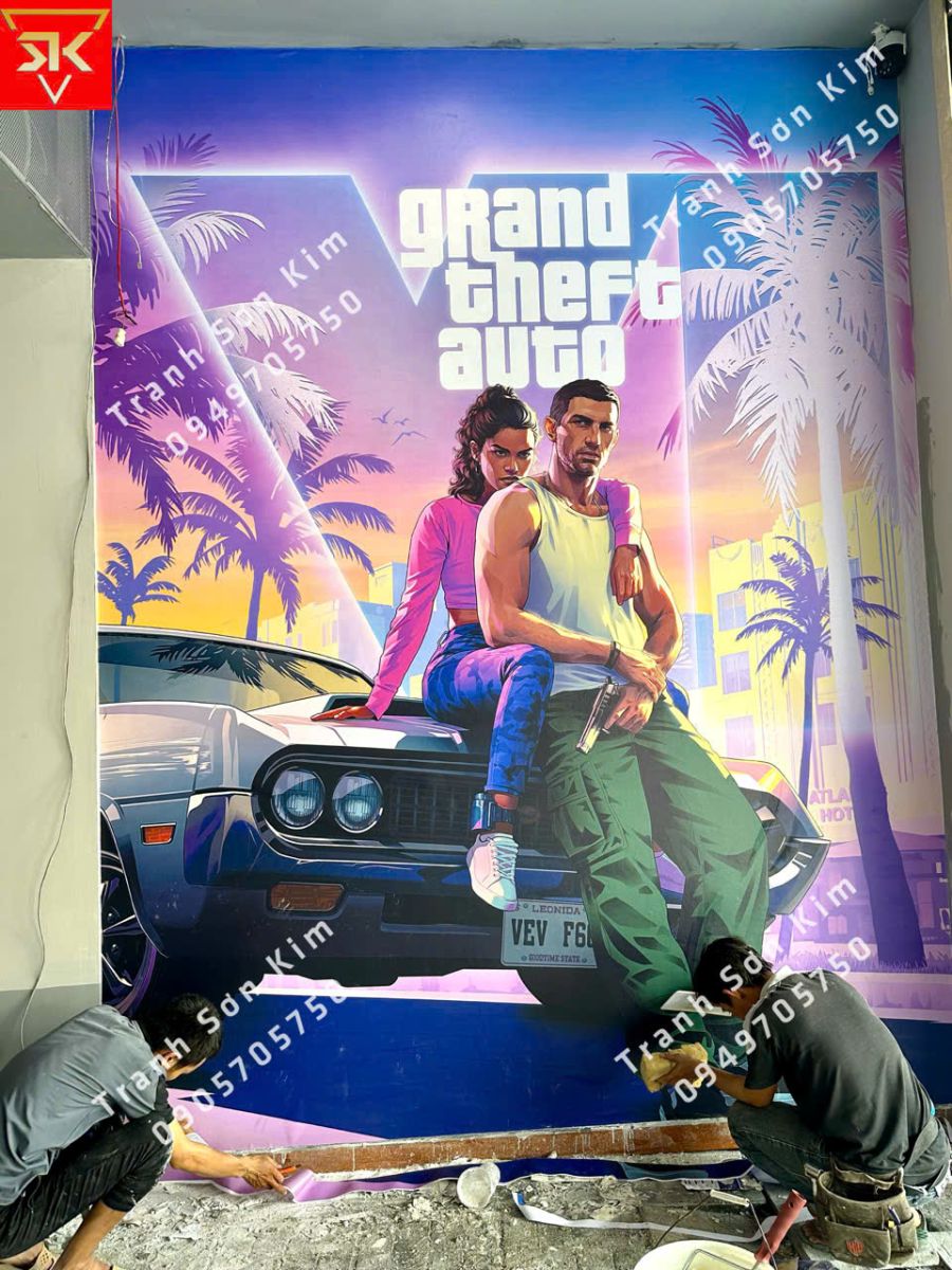 Thi công tranh dán tường phòng game hiện đại