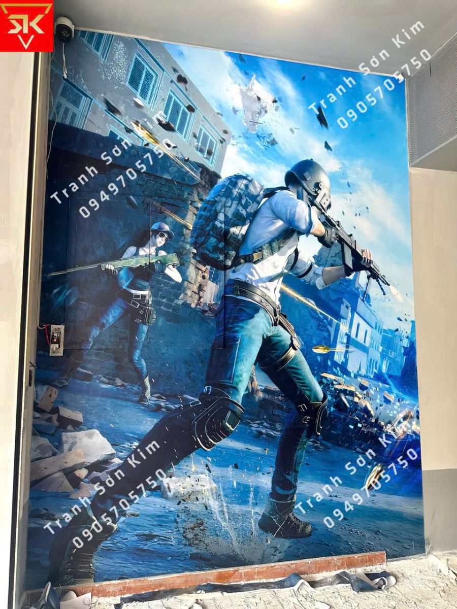 Thi công tranh dán tường mẫu PUPG cho phòng game