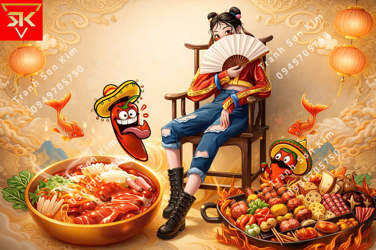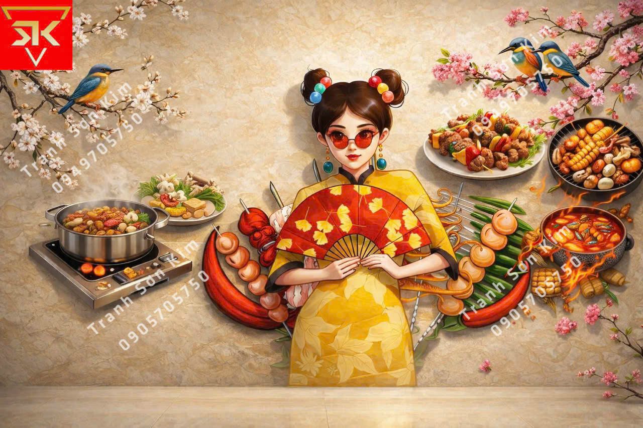 Tranh dán tường cô gái trung hoa – điểm nhấn nghệ thuật cho quán lẩu nướng